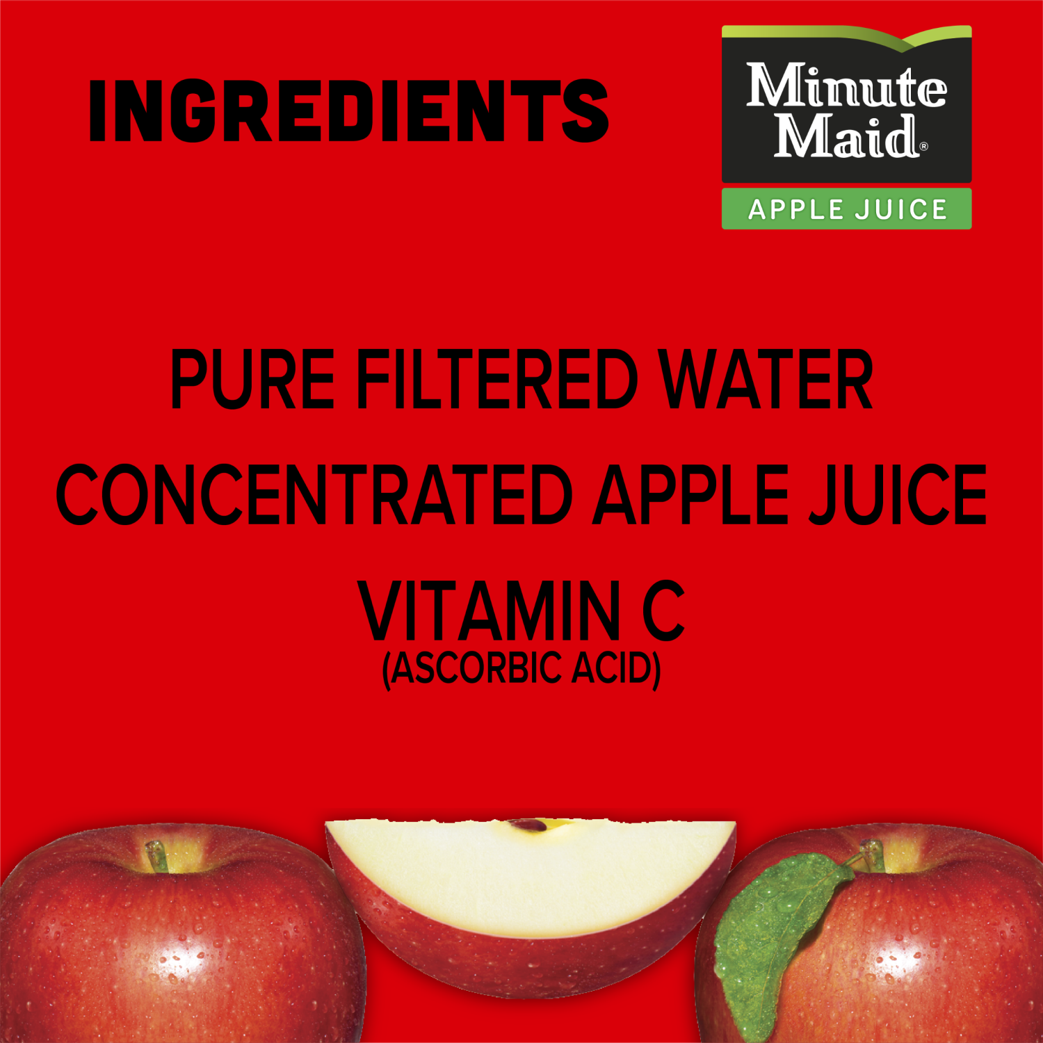 Contains Pure Filtered Water, Concentrated Apple Juice, Vitamin C (Ascorbic Acid).