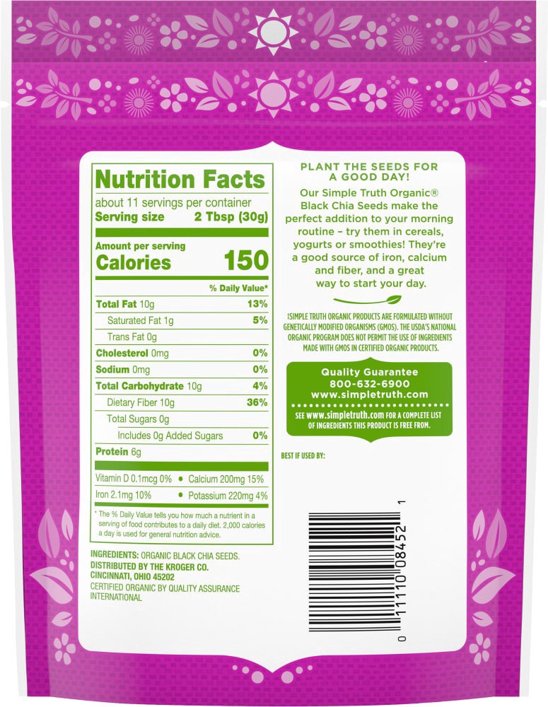 Plant the seeds for a good day our simple truth organic black chia seeds make the perfect addition to your morning routinetry them in cereals yogurts or smoothies theyre a good source of iron calcium …
