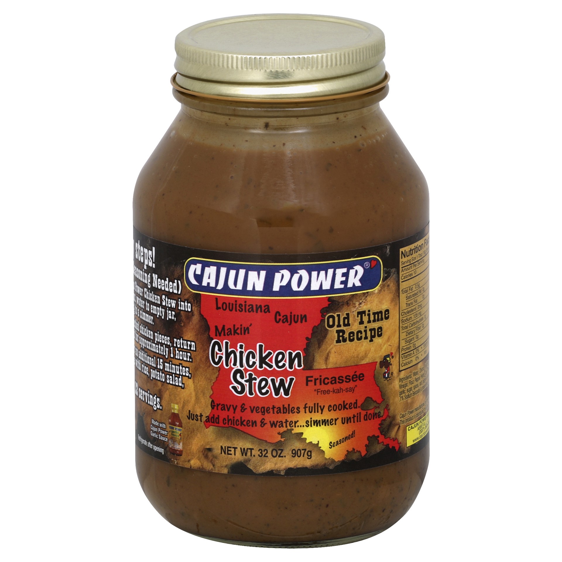 Gravy & vegetables fully cooked just add chicken & water – simmer until done. Makes 10 – 12 servings. Made with Cajun power garlic sauce. Cajun power manufactures and distributes fine quality products…