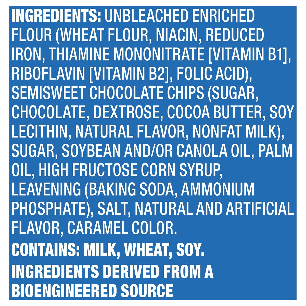 Unbleached Enriched Flour (Wheat Flour, Niacin, Reduced Iron, Thiamine Mononitrate [Vitamin B1], Riboflavin [Vitamin B2], Folic Acid), Semisweet Chocolate Chips (Sugar, Chocolate, Dextrose, Cocoa Butt…