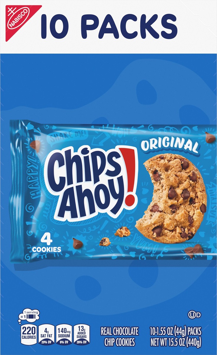- Includes ten snack packs of CHIPS AHOY! Original Chocolate Chip Cookies