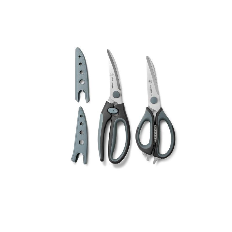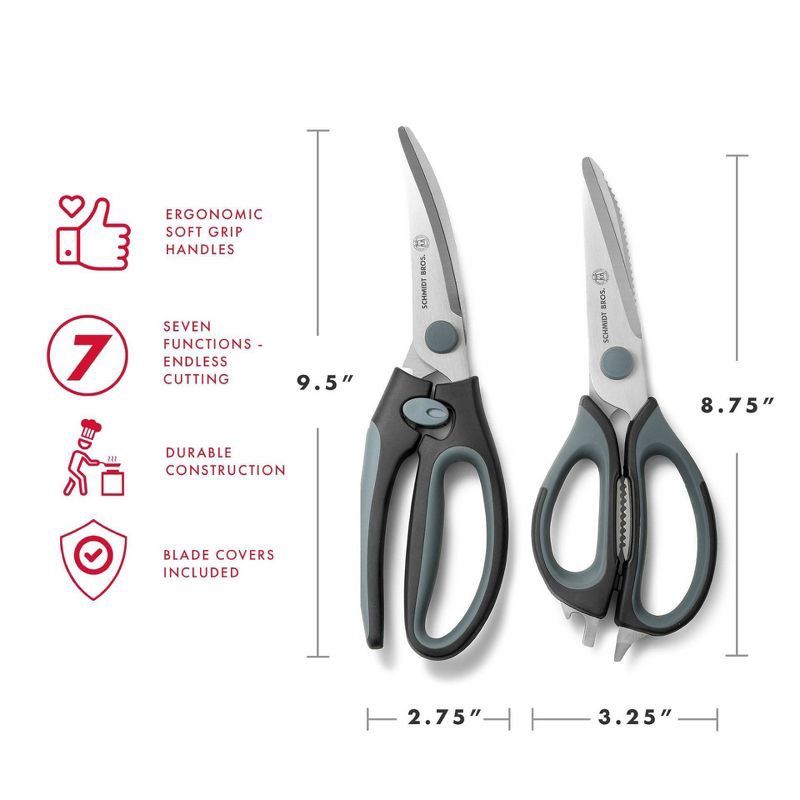 The Schmidt Bros. have been redefining kitchen cutlery, BBQ tools, and storage solutions since 2010. The 2 Pc. Kitchen Shear Set appliess the best of kitchen cutlery expertise to easy-to-use shears.Mu…