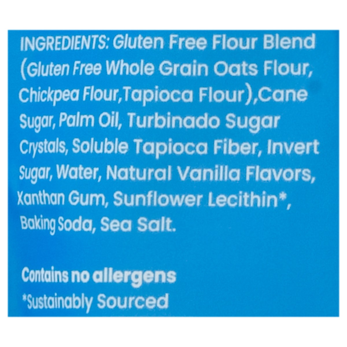 Gluten Free Flour Blend (Gluten Free Whole Grain Oats Flour, Chickpea Flour, Tapioca Flour), Cane Sugar, Palm Oil, Turbinado Sugar Crystals, Soluble Tapioca Fiber, Invert Sugar, Water, Natural Vanilla…