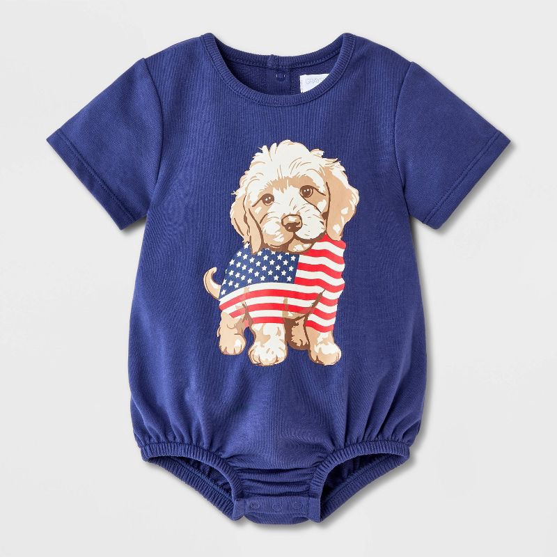 Grayson Mini Baby' Ameriana Puppy Flag Bodysuit - Navy Blue Newborn