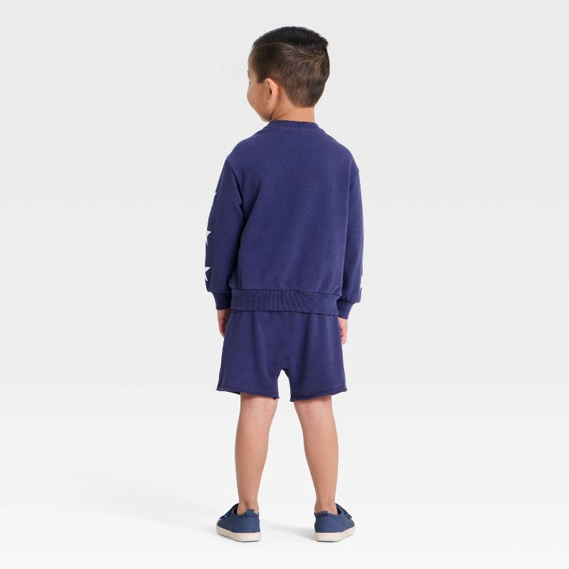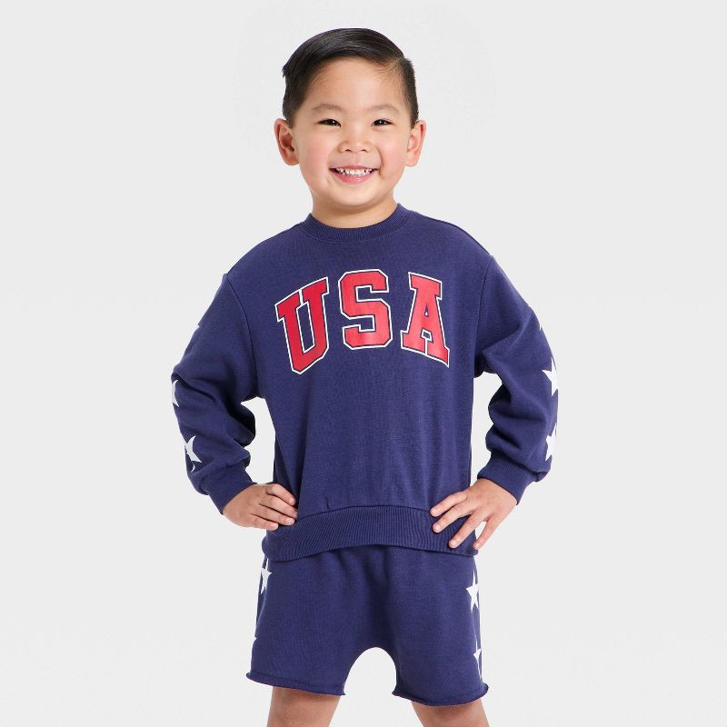 Grayson Mini Toddler Boys' 2pc Americana USA Crewneck Sweatshirt & Shorts Set - Navy Blue 2T