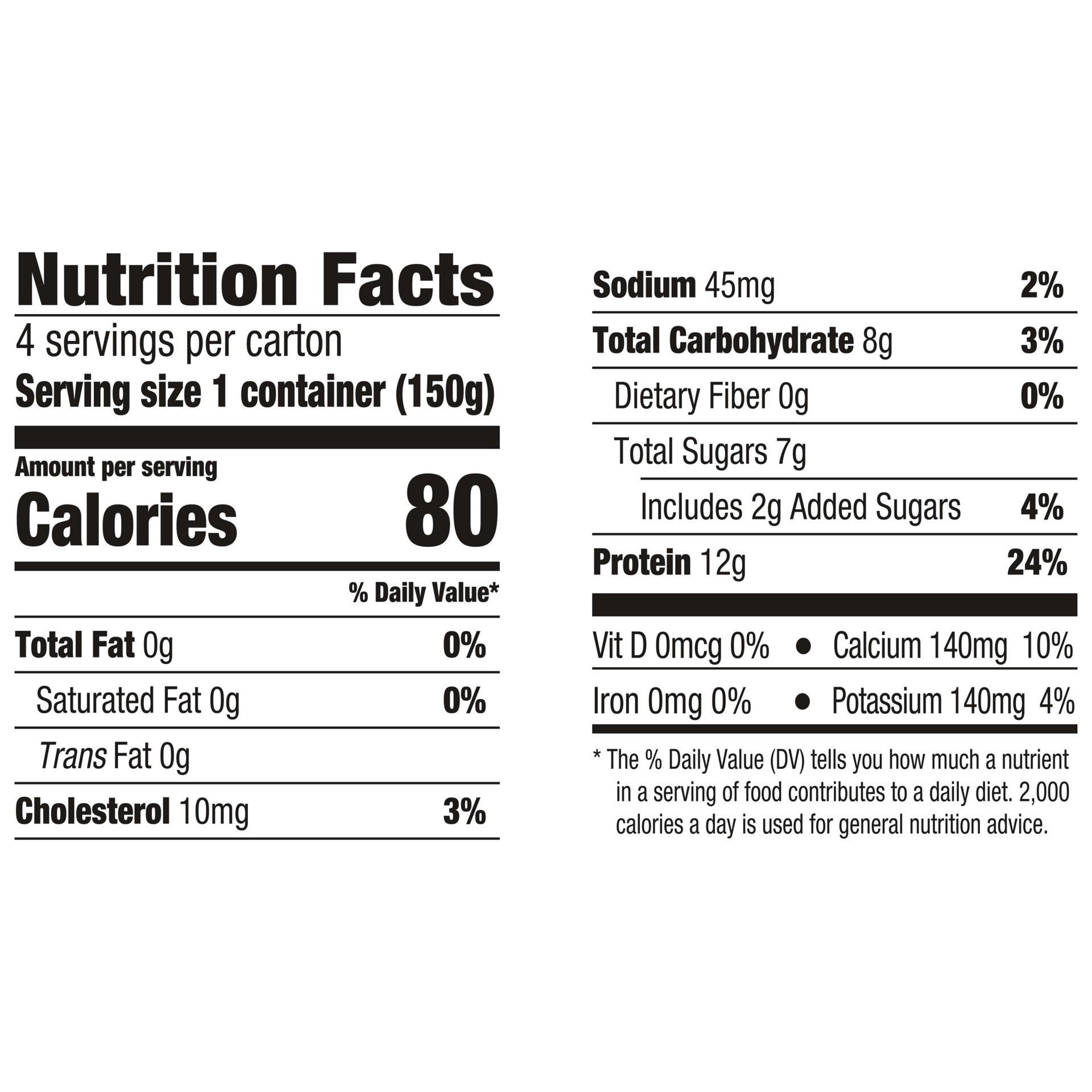 Cultured Non Fat Milk, Water, Blueberry Puree, Fructose, Less than 1%: Natural & Artificial Flavors, Carmine (for Color), Modified Food Starch, Acesulfame Potassium, Sucralose, Malic Acid, Potassium S…