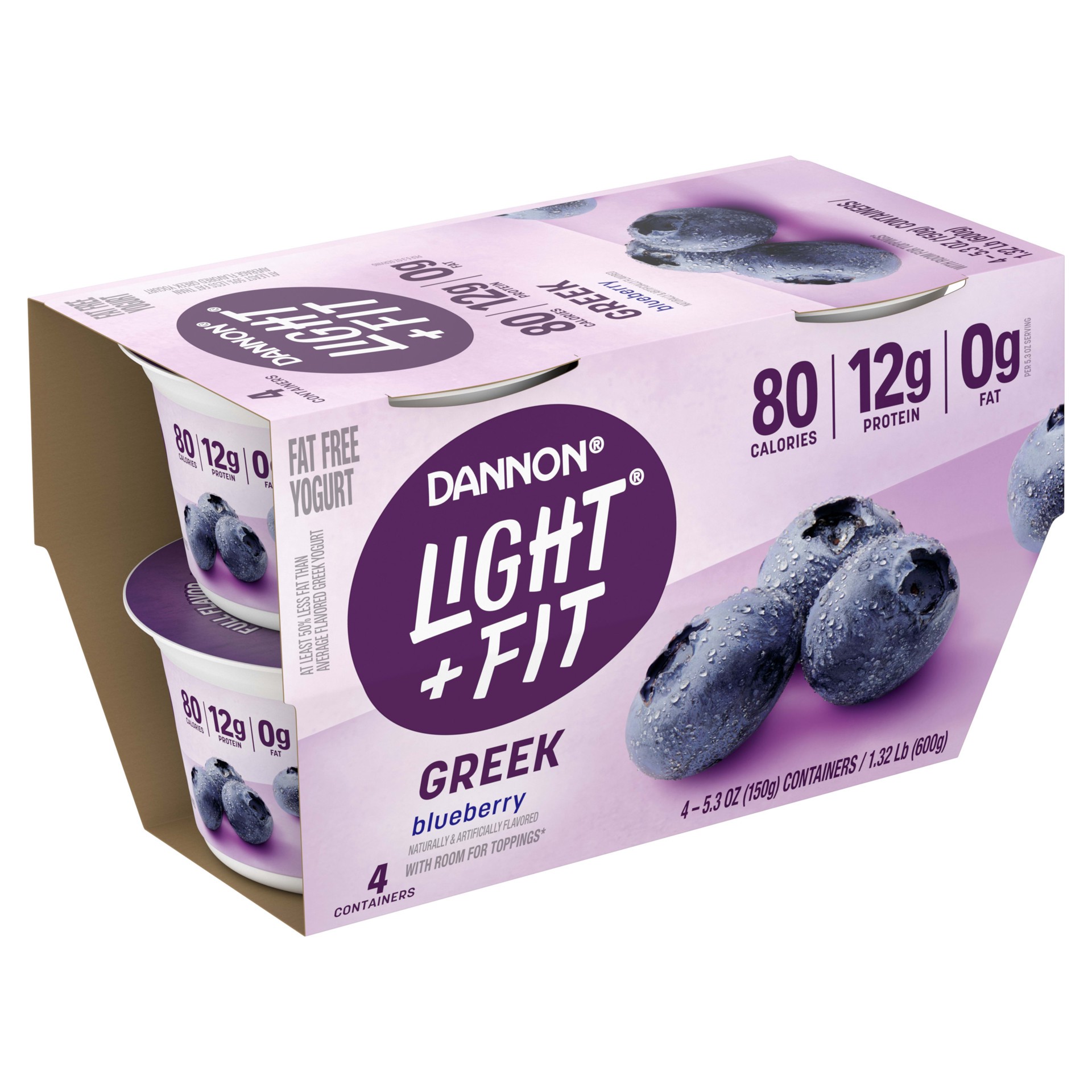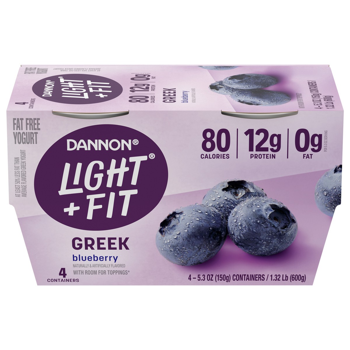 Dannon Light + Fit Blueberry Greek Fat Free Yogurt Pack, 4 Ct, 5.3 OZ Cups