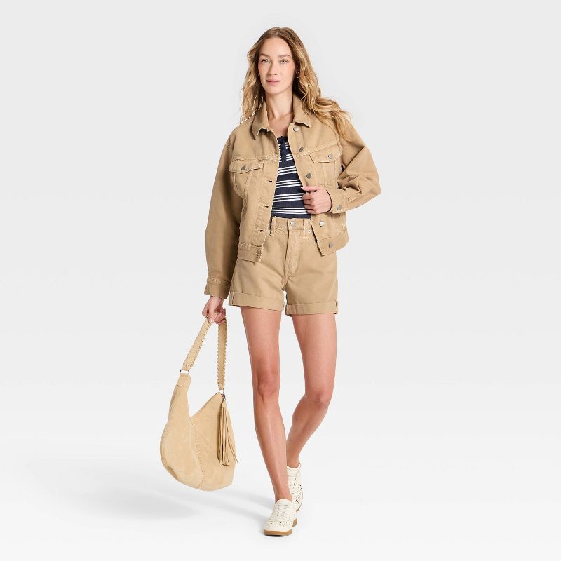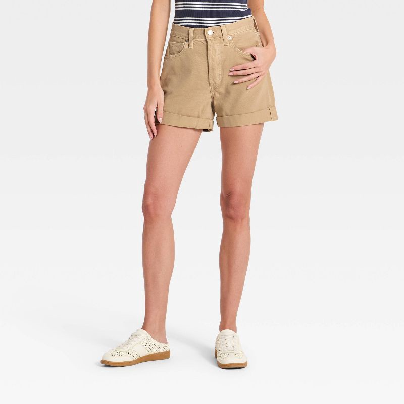 Women's Mid-Rise 90s Baggy Cuff Denim Shorts - Universal Thread™ Khaki 6