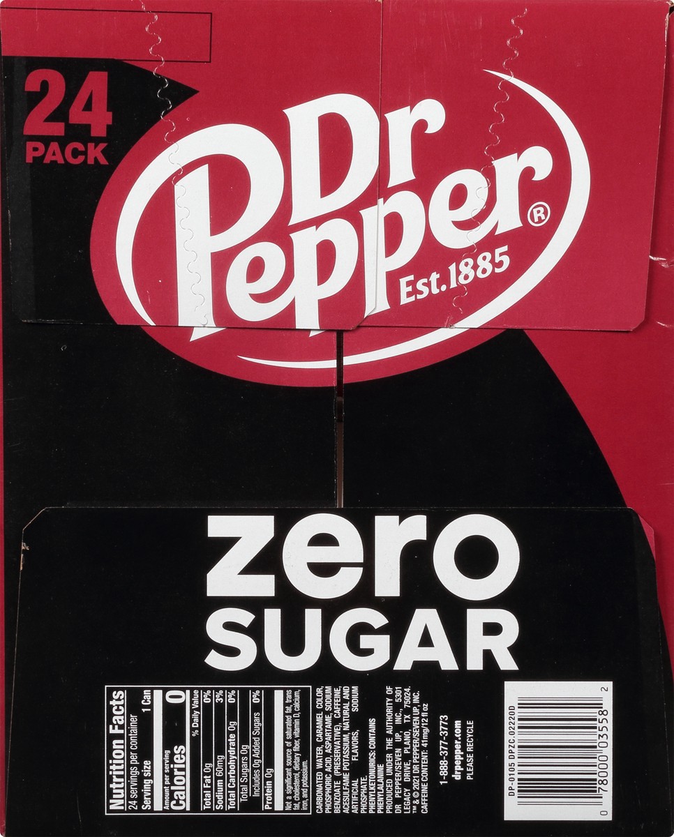 Dr Pepper Zero Sugar Soda, 24 Pack