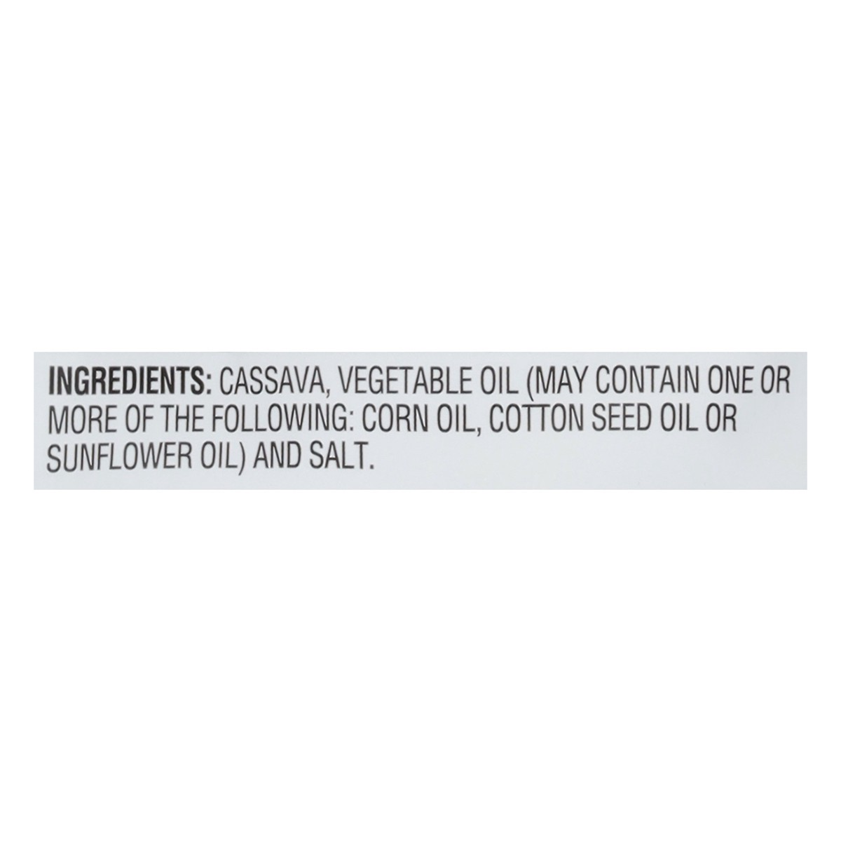 Cassava, Vegetable Oil (May Contain One or More of the Following: Corn Oil, Cotton Seed Oil or Sunflower Oil) and Salt.