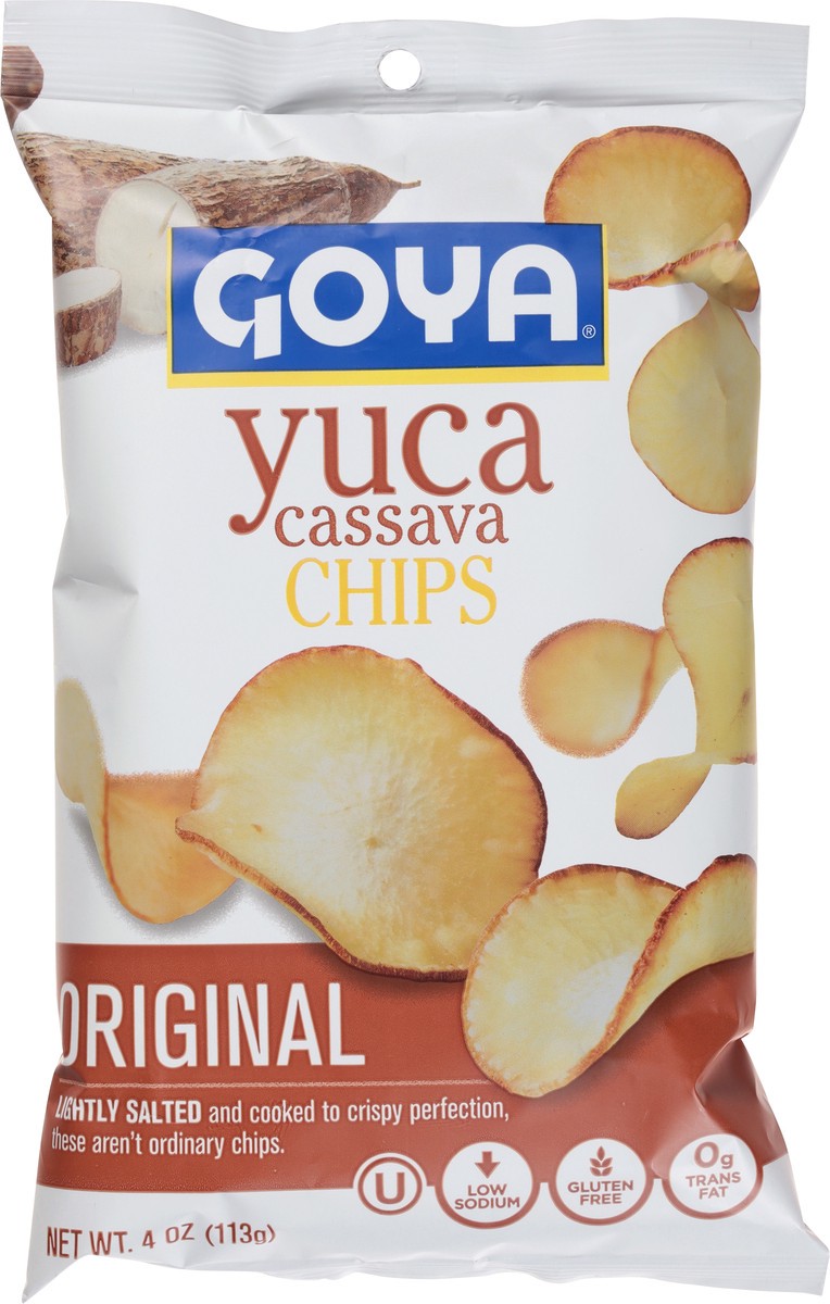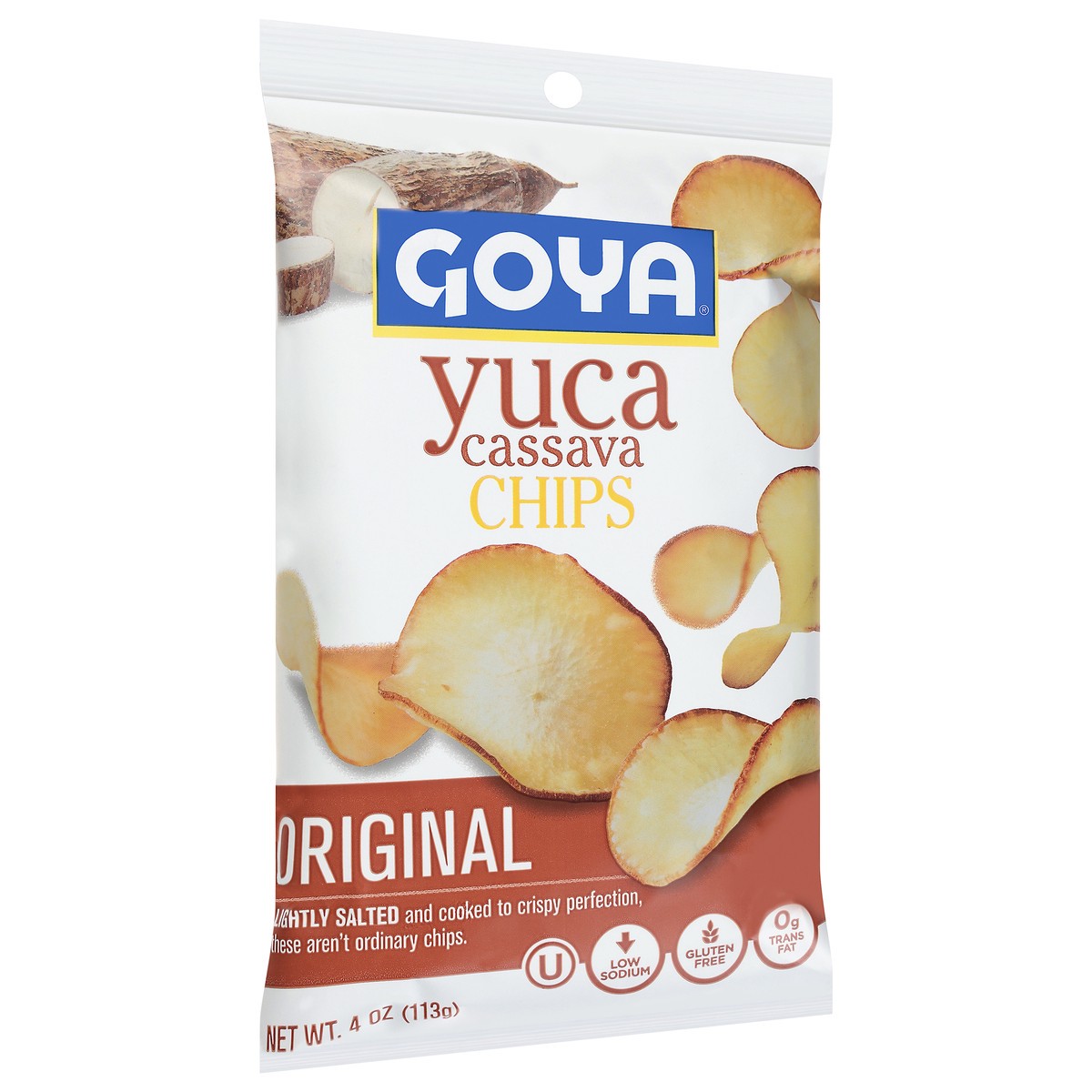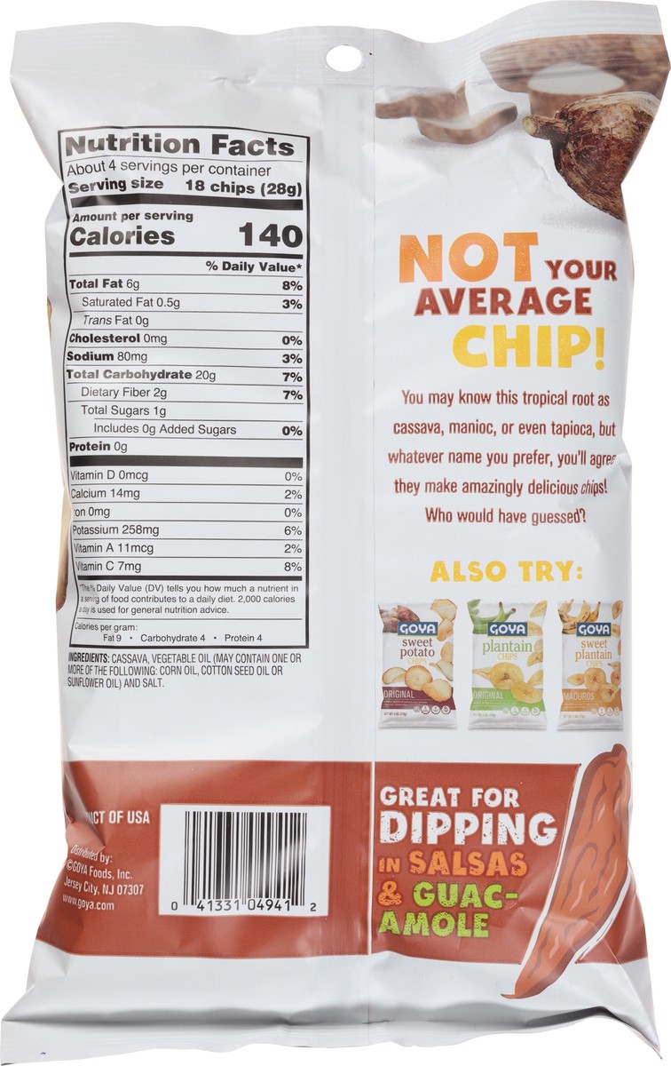 Cassava chips. www.goya.com. Use as a snack. Use as a garnish. Use as a side dish. Perfect for parties.