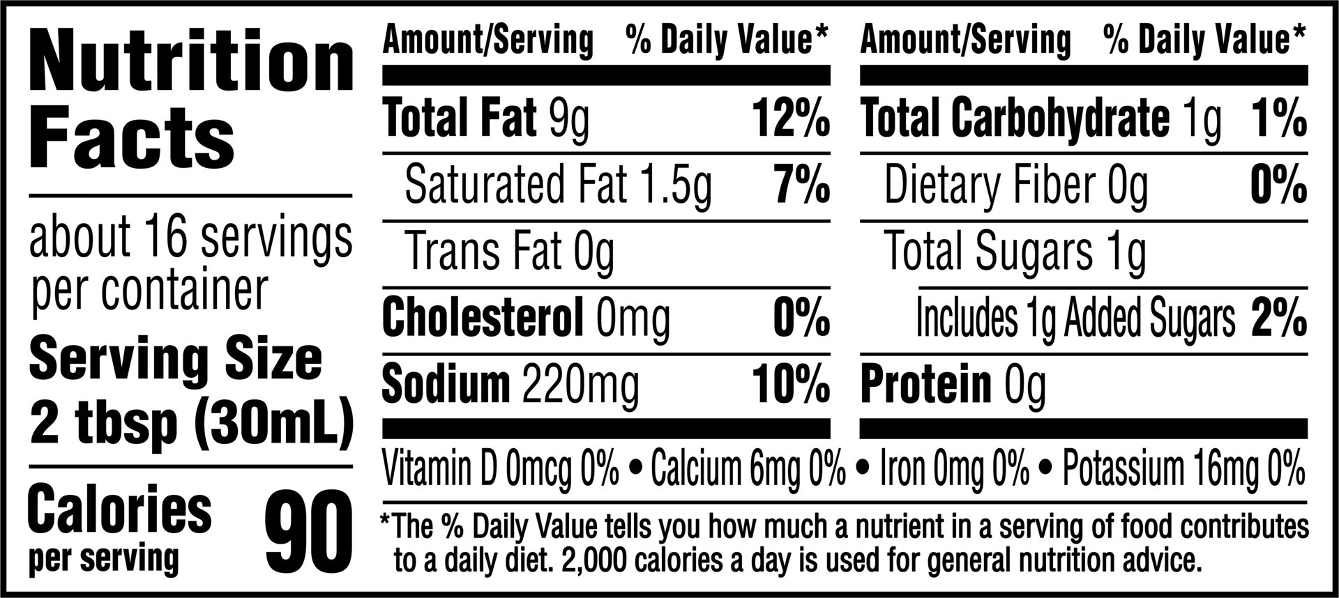 Water, Vegetable Oil (Soybean and/or Canola), Sugar, Less Than 2% of: Avocado (2), Buttermilk, Garlic (2), Onion (2), Black Pepper, Natural Flavors, Xanthan Gum, Salt, Maltodextrin, Phosphoric Acid, M…