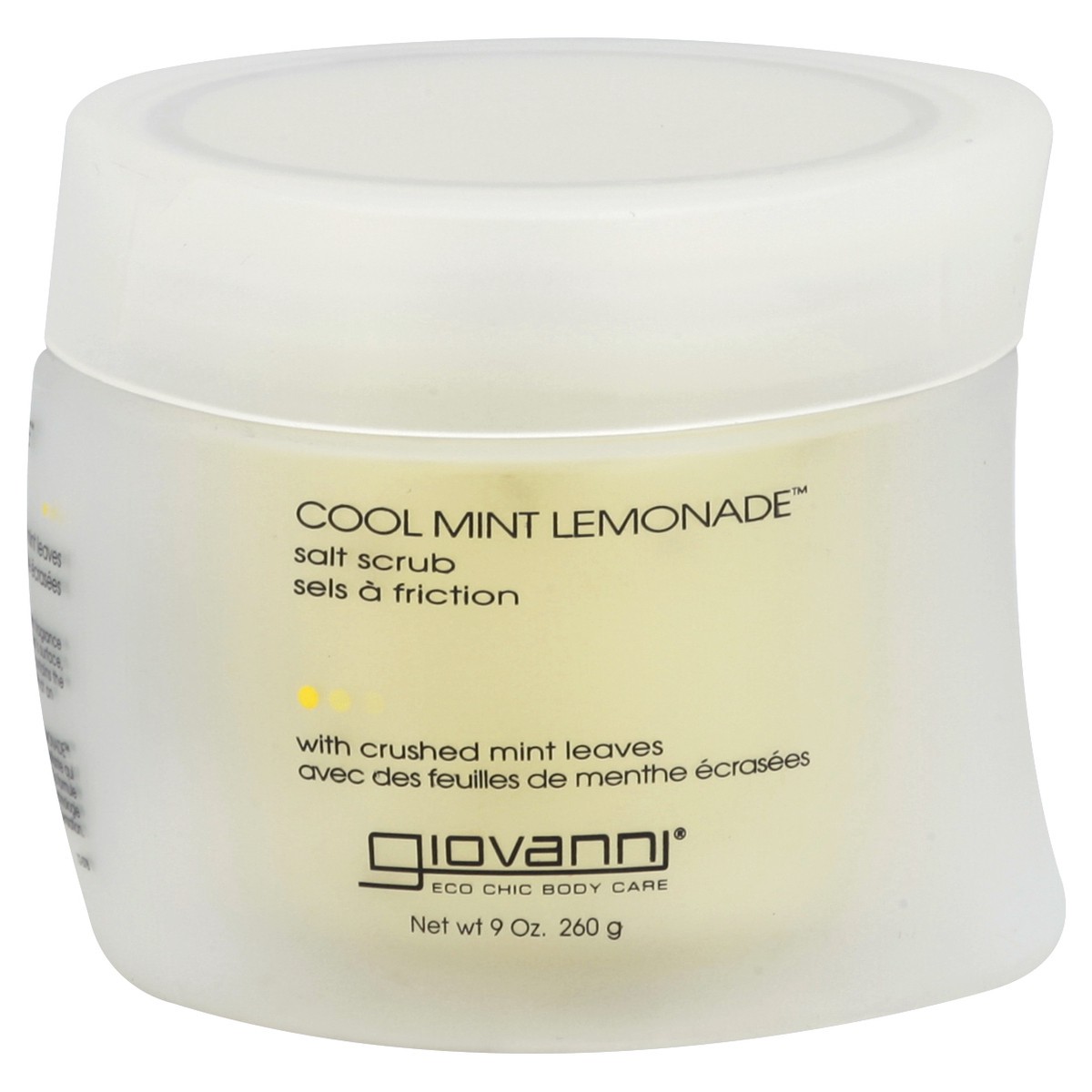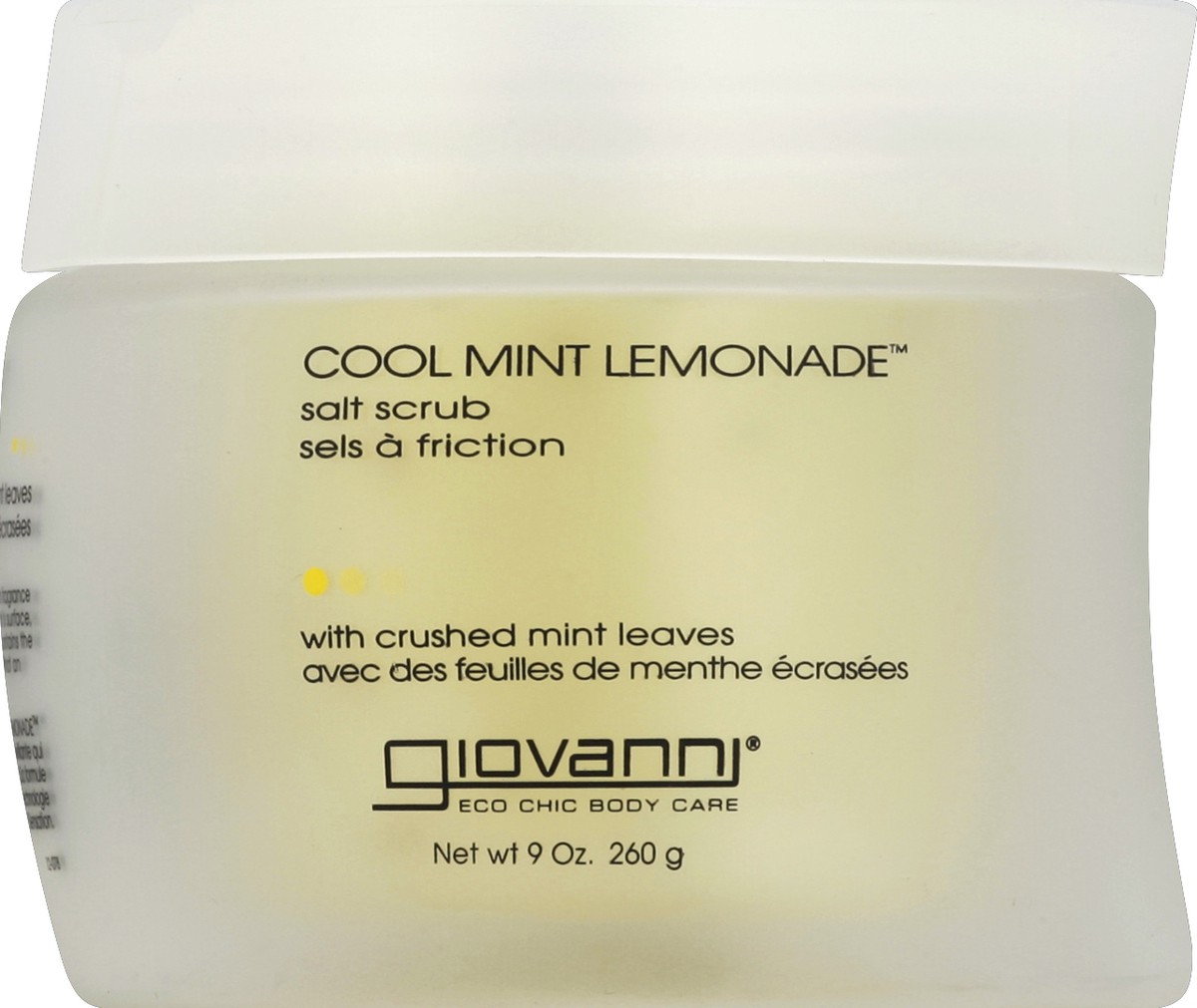 Eco chic body care. With crushed mint leaves. Cool Mint Lemonade Salt Scrub tingles with fragrance and is an invigorating body exfoliator that polishes skin's surface, removing cellular debris. The ri…