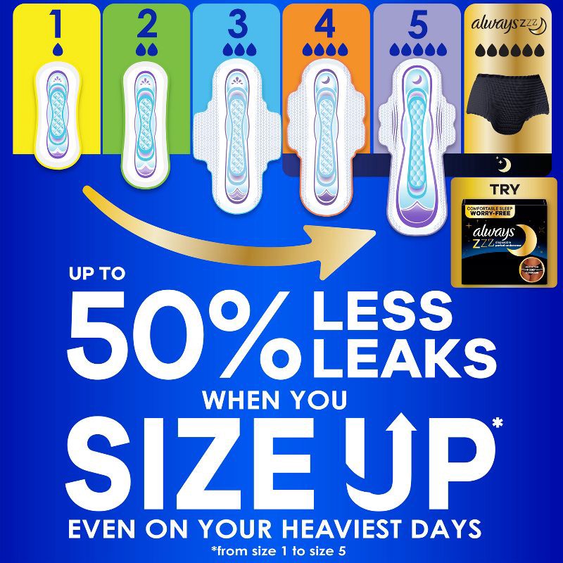 - SIZE UP FOR LESS LEAKS even on your heaviest days