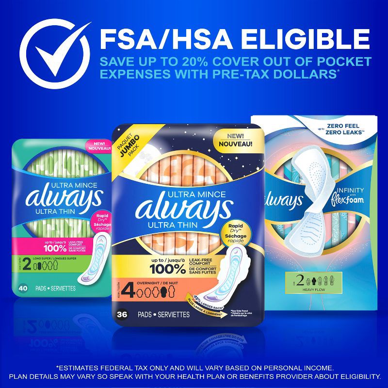 - GET UP TO 100% LEAK-FREE COMFORT with Always Ultra Thin Pads for Women