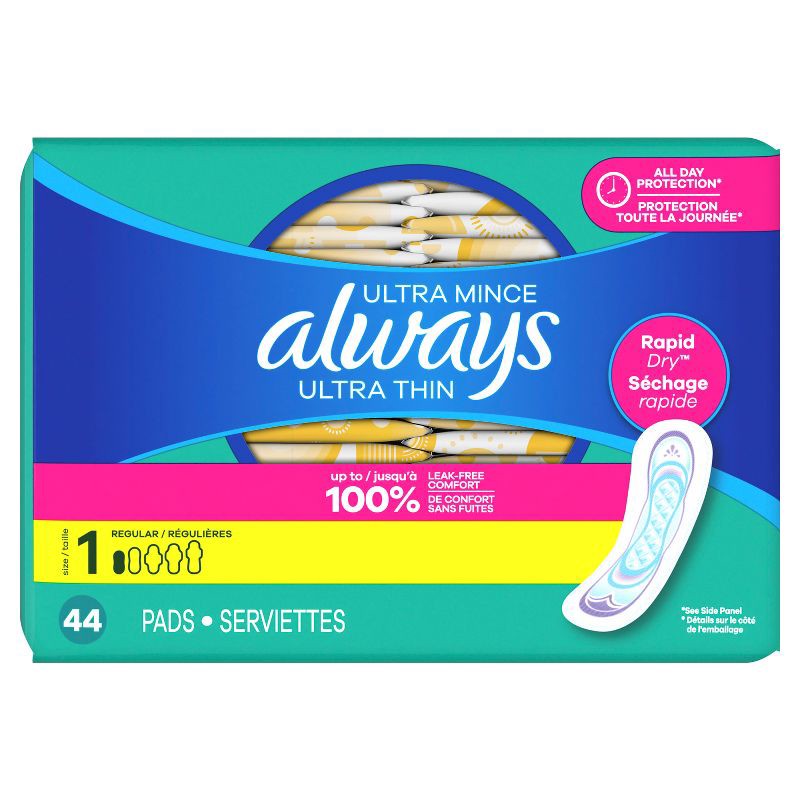 Always Ultra Thin Pads Size 1 Regular Absorbency Unscented - 44ct