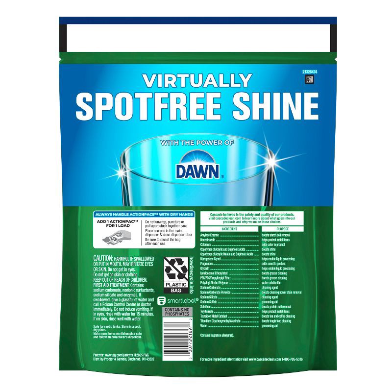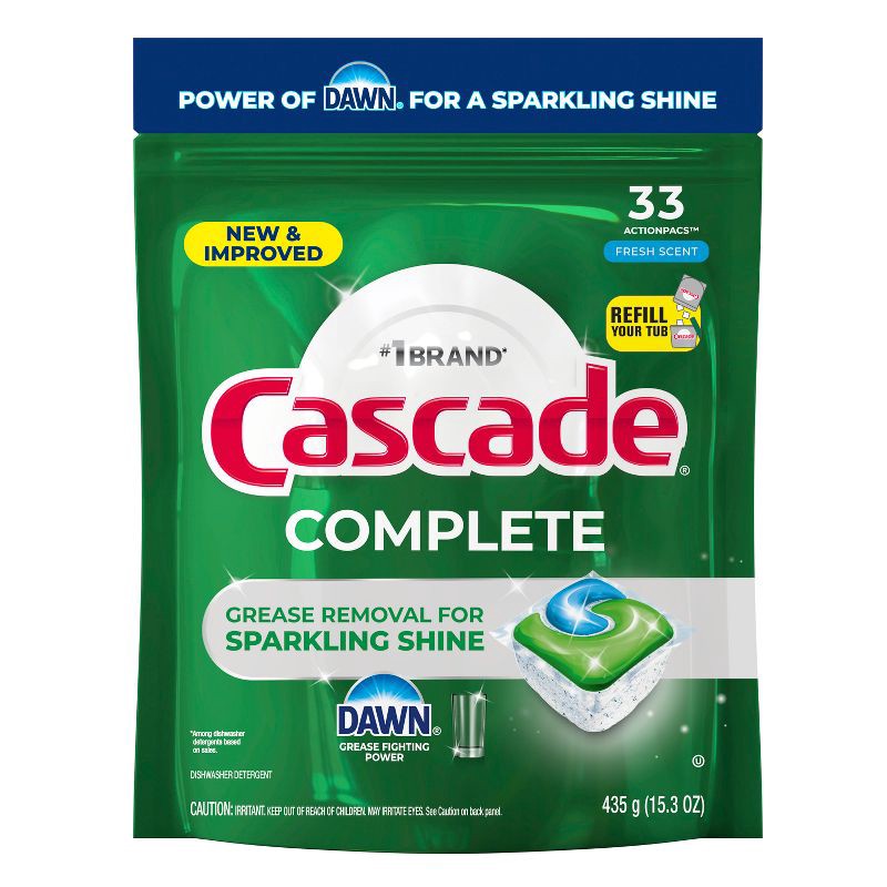 New & Improved Cascade Complete ActionPacs dishwasher detergent removes visibly and invisible residue for a Complete clean and a sparkling shine. That's because every ActionPac is formulated with the …