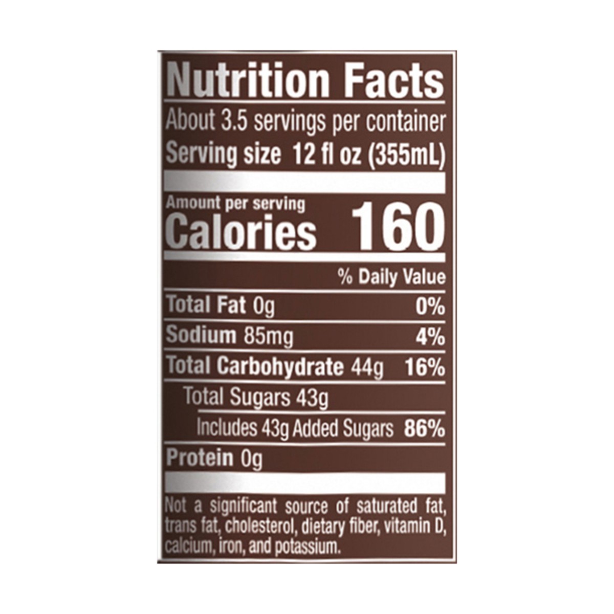 Carbonated Water, High Fructose Corn Syrup, Caramel Color, Sodium Benzoate (Preservative), Natural and Artificial Flavors, Quillaia Extract.