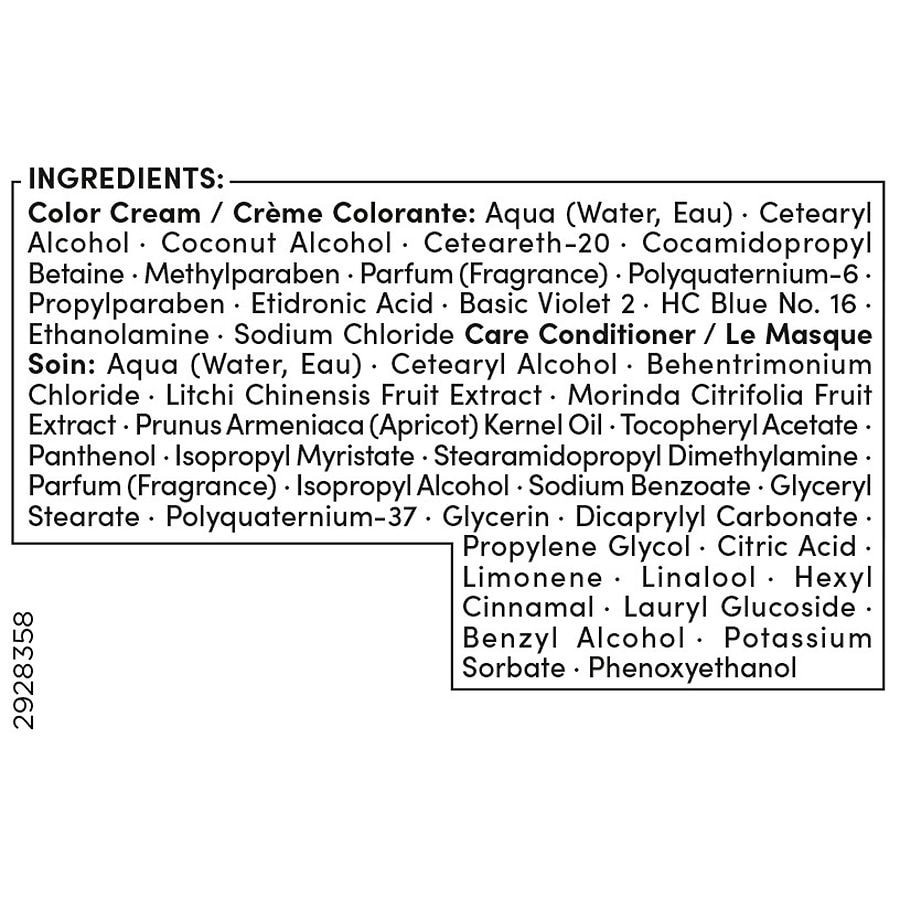 Color Cream: Aqua (Water, Eau) · Cetearyl Alcohol · Coconut Alcohol · Ceteareth-20 · Cocamidopropyl Betaine · Methylparaben · Parfum (Fragrance) · Polyquaternium-6 · Propylparaben · Etidronic Acid · B…