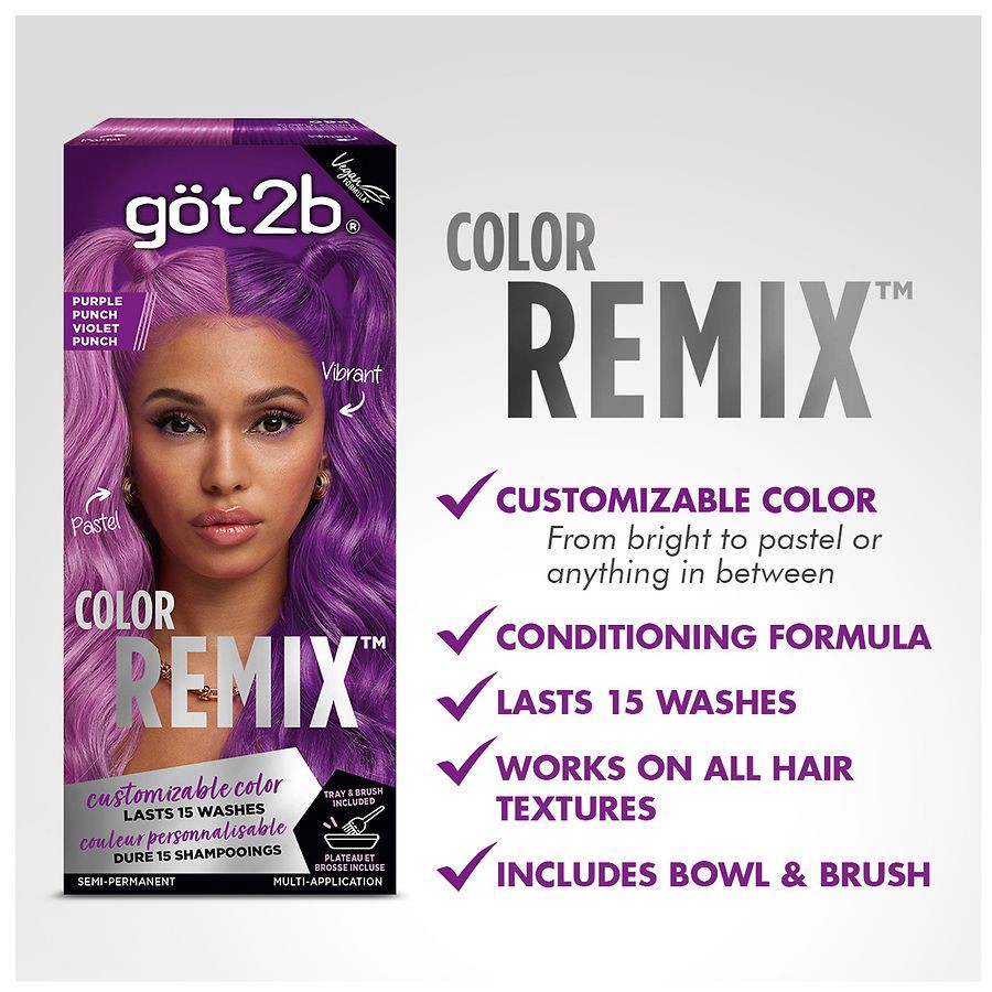 Got2b Color Remix, Customizable Semi-Permanent Hair ColorNew got2b Color Remix semi-permanent hair color kit lets YOU decide! Discover a world of vibrant shades that last up to 15 washes. Play, mix, a…