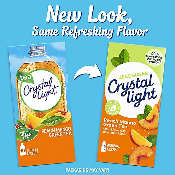 Crystal Light Naturally Flavored Peach Mango Green Tea On-The-Go Powdered Drink Mix is a light and refreshing beverage you can enjoy at any time of day. With zero grams of sugar and 5 calories per pac…