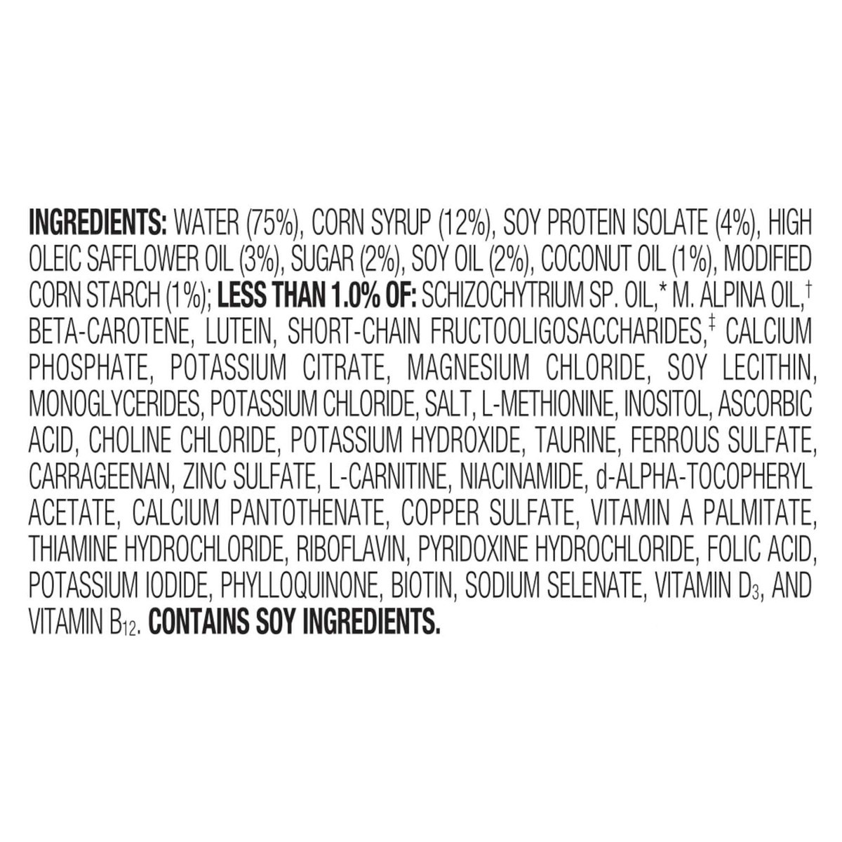 Water (75%), Corn Syrup (12%), Soy Protein Isolate (4%), High Oleic Safflower Oil (3%), Sugar (2%), Soy Oil (2%), Coconut Oil (1 %), Modified Corn Starch (1%); Less than 1.0% of: C. Cohnii Oil (Source…