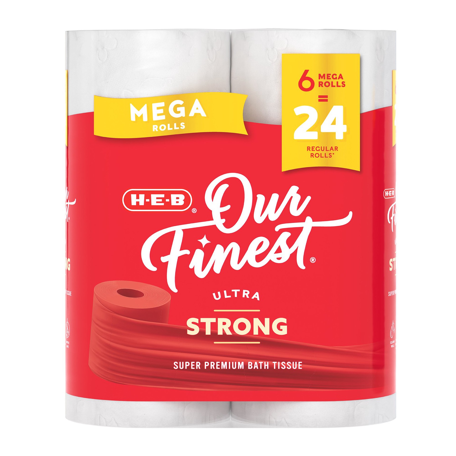 Made with strength in mind, H-E-B Our Finest Ultra Strong Mega Roll Toilet Paper delivers a strong, confident clean in every situation. This is our strongest 2-ply toilet paper yet, with the softness …