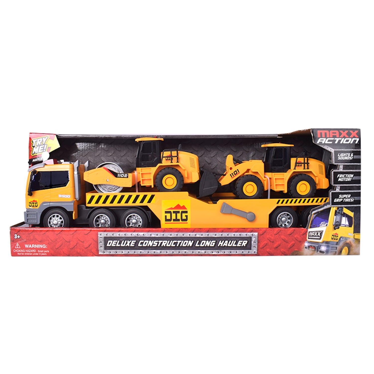 Get ready for big construction adventures with the Maxx Action Deluxe Construction Long Hauler! This massive truck is over 19 inches long and comes with two additional 7-inch construction vehicles on …