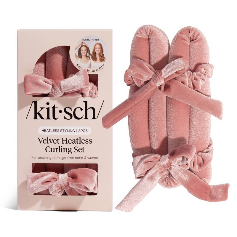 The Kitsch Velvet Heatless Curling Set creates beautiful, bouncy curls and waves without using heat, keeping hair healthier and shiny. Its soft velvet gently grips strands, preventing dents or creases…