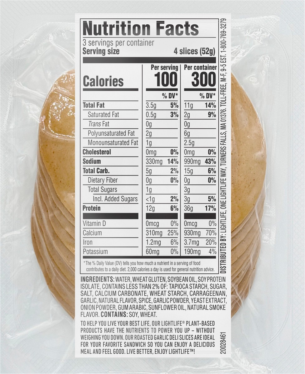 Lightlife Deli Slices Roasted Garlic Plant Based - 5.5 Oz