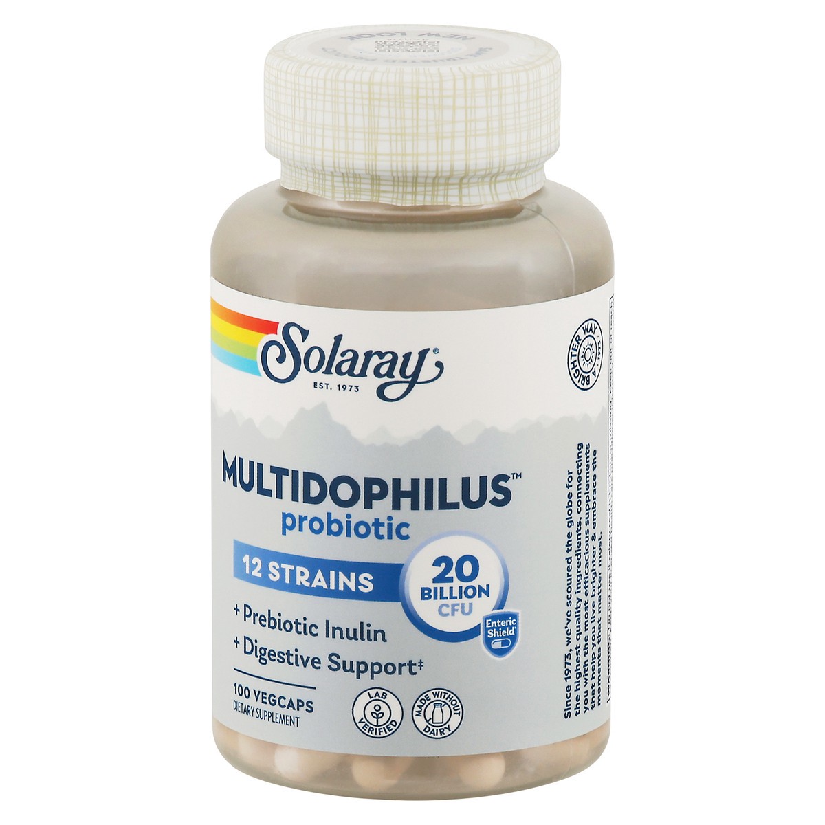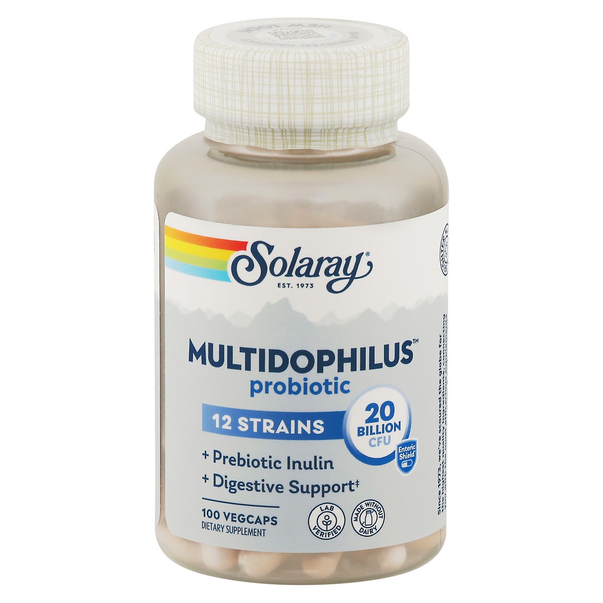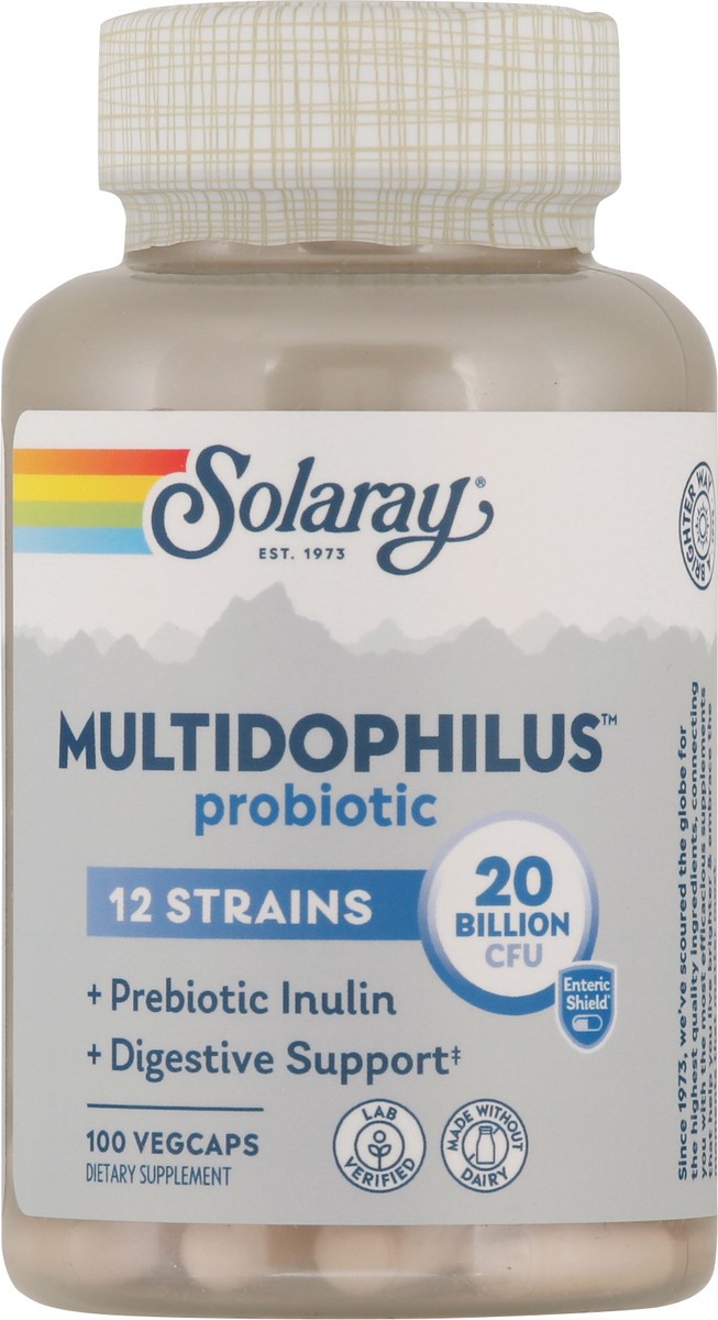 Solaray Est. 1973. 12 Strains - 20 Billion CFU. Enteric Shield. Prebiotic inulin. Digestive support. Lab verified. Made without dairy. New look, same trusted product. Discussion: Each serving provides…