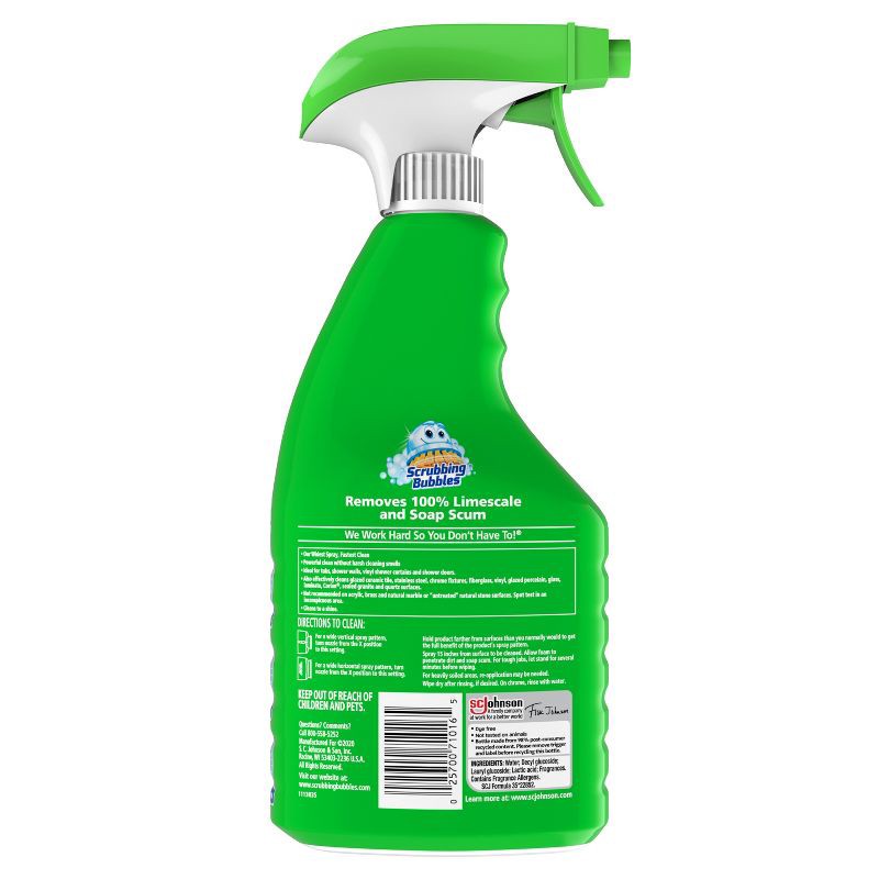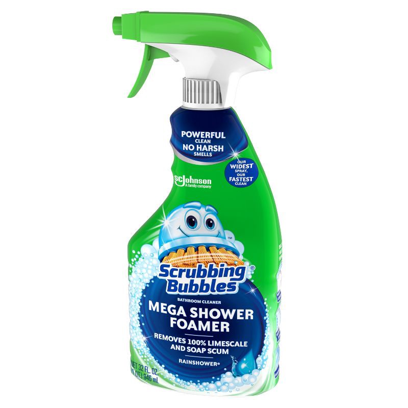 - Scrubbing Bubbles Mega Shower Cleaner has a foaming, grime-busting formula