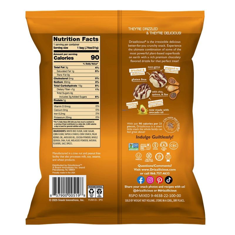 Drizzilicious is a light and crunchy, better-for-you snack made with whole grains, quinoa, chia, and flax. The ideal combination of great taste, nature's super foods, and drizzled decadence.At just 90…