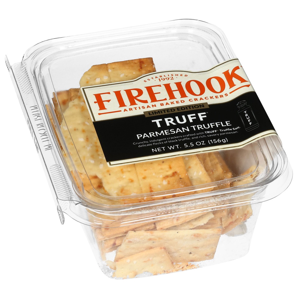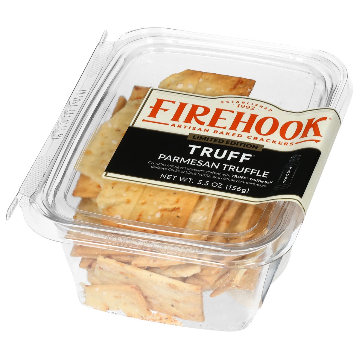 Limited Edition Crunchy, indulgent crackers crafted with truff truffle salt, delicate flecks of black truffle, and rich, savory parmesan. Established 1992. Artisan baked crackers. www.firehook.com. In…