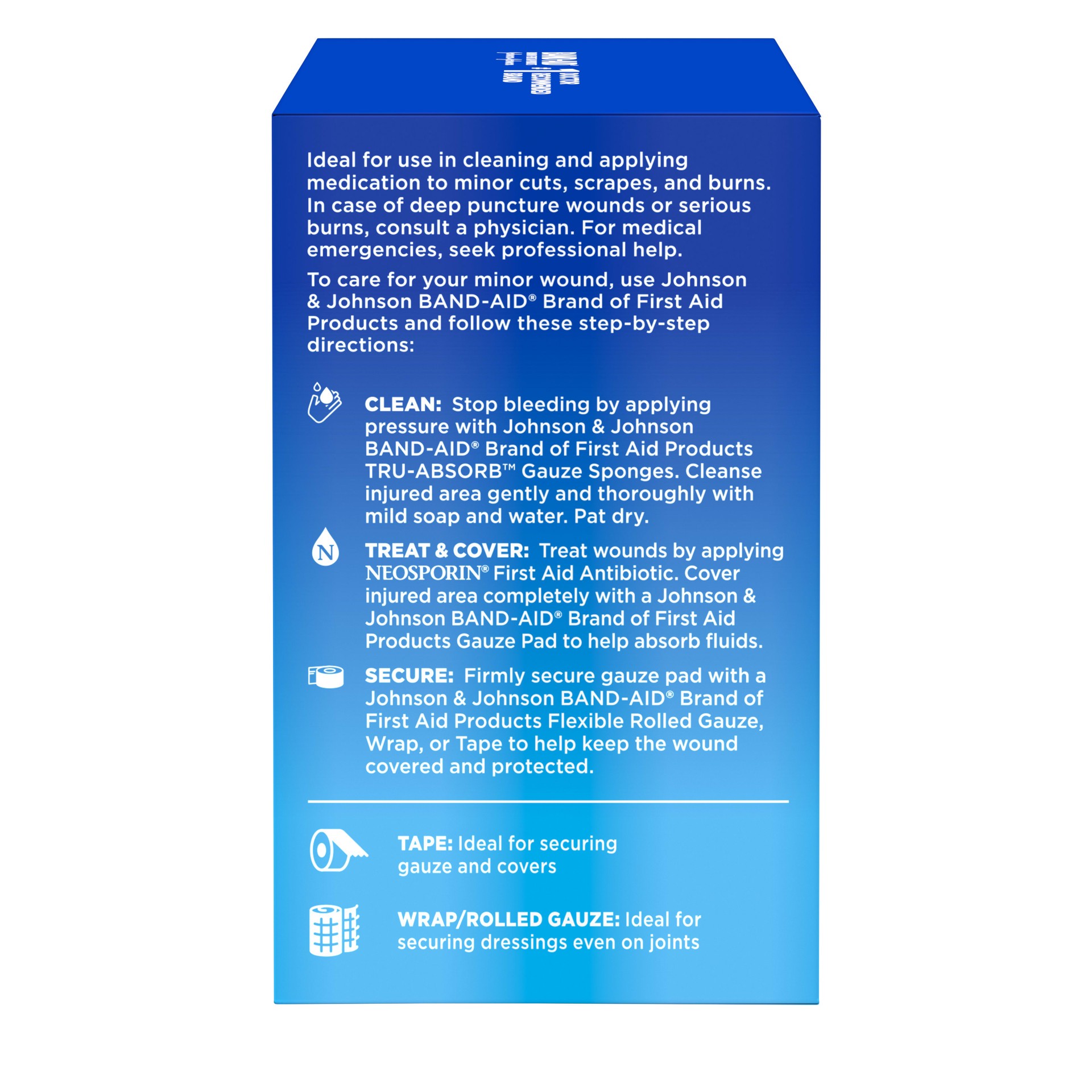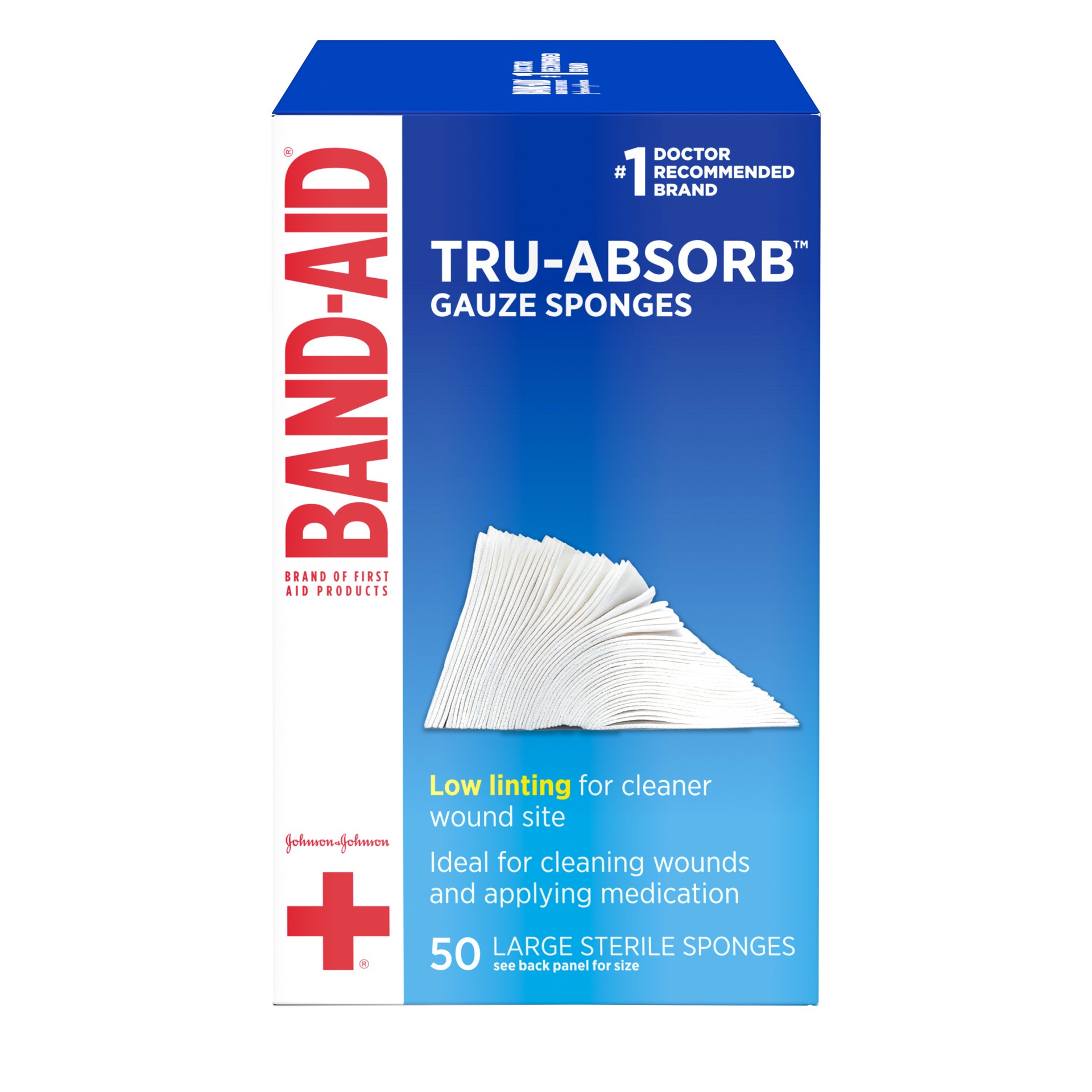 Delicately care for wounds with Band-Aid Brand of First Aid Products Tru-Absorb Sterile Gauze Sponges. Each large gauze sponge measures 4 inches by 4 inches, making them ideal for cleaning and applyin…