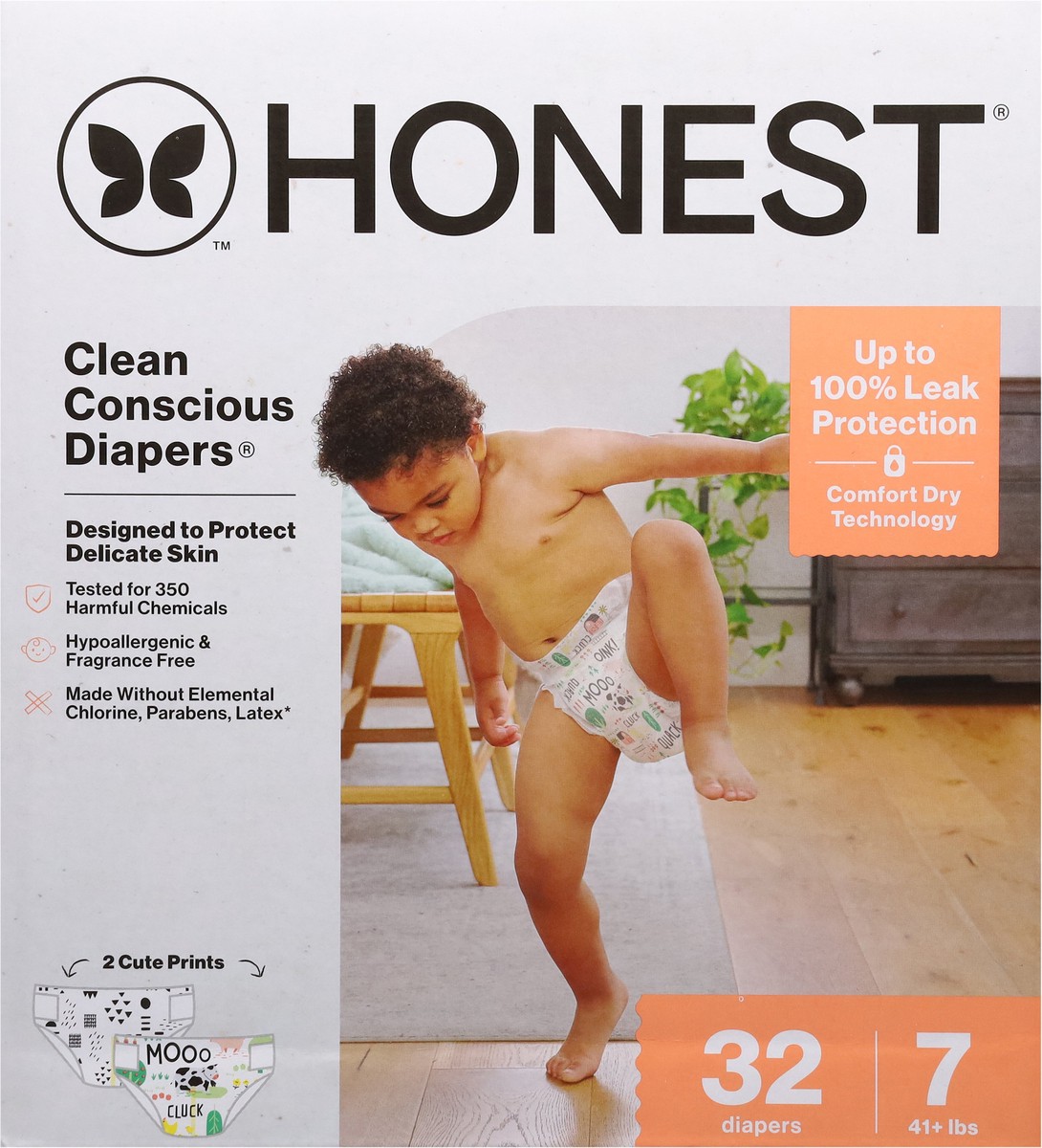 Honest Pattern Play/Barnyard Babies Clean Conscious Size 7 Diapers (41+ lbs (19+ kg)) 32 Each