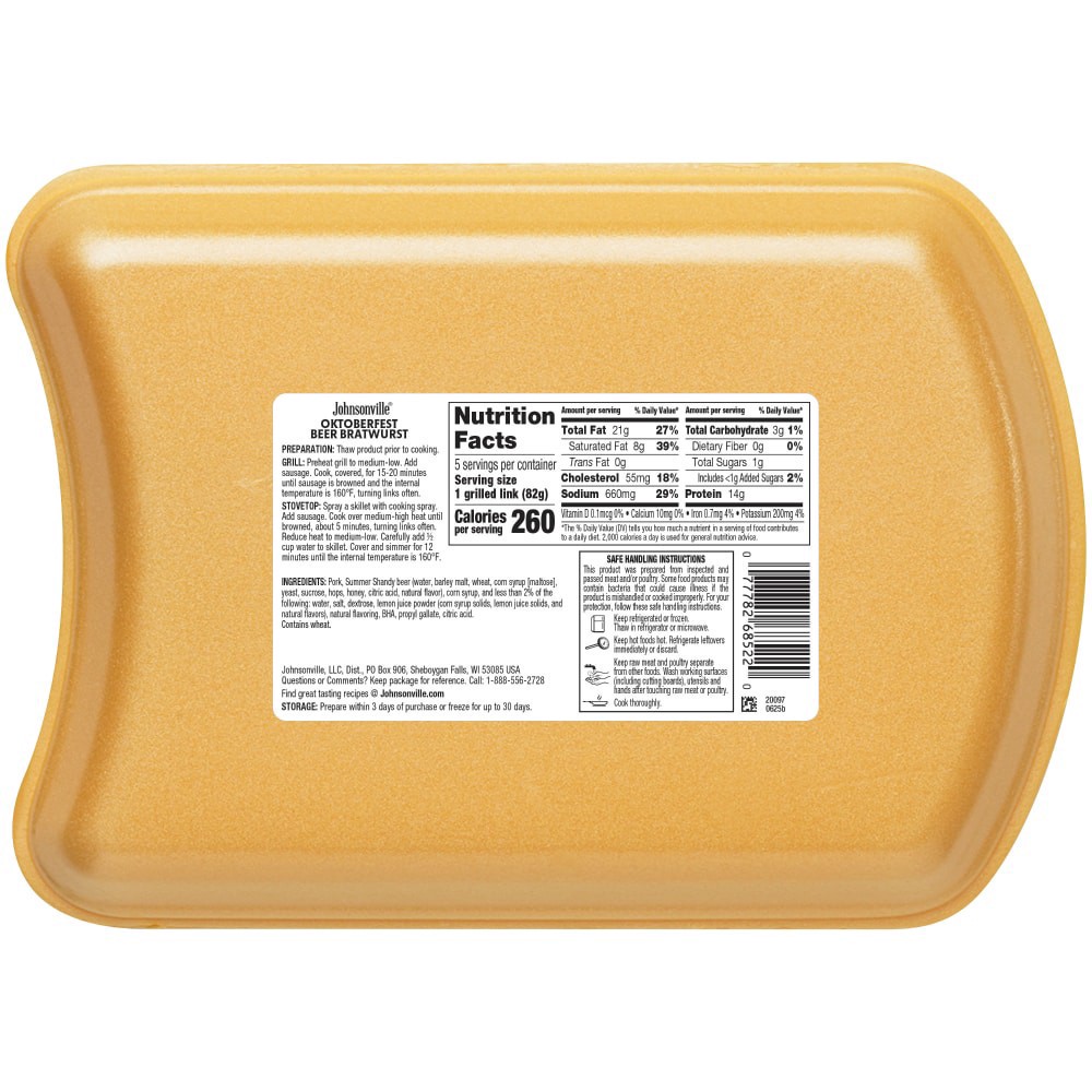 Ingredients: Pork, Oktoberfest beer, corn syrup, and less than 2% of the following: water, salt, dextrose, natural flavors, dried vinegar, BHA, propyl gallate, citric acid. May contain wheat.