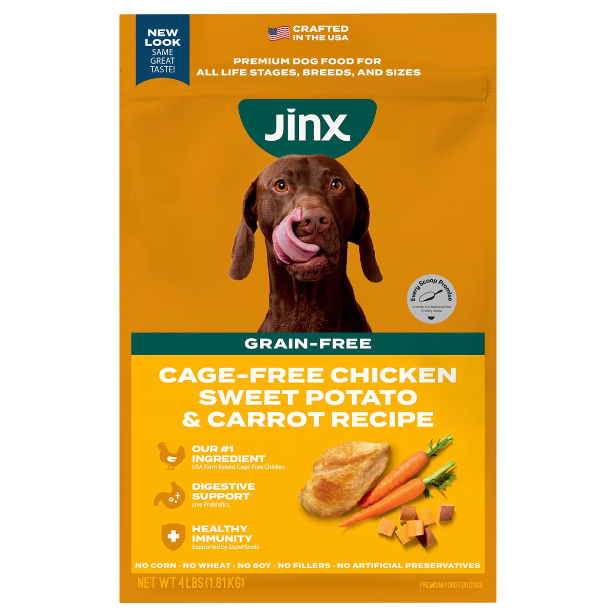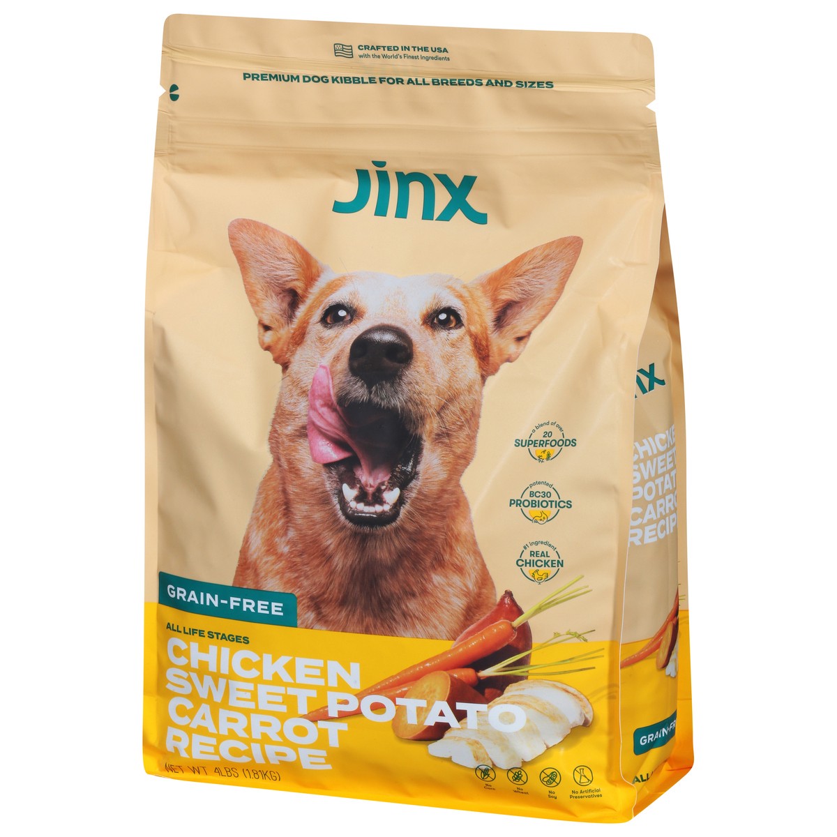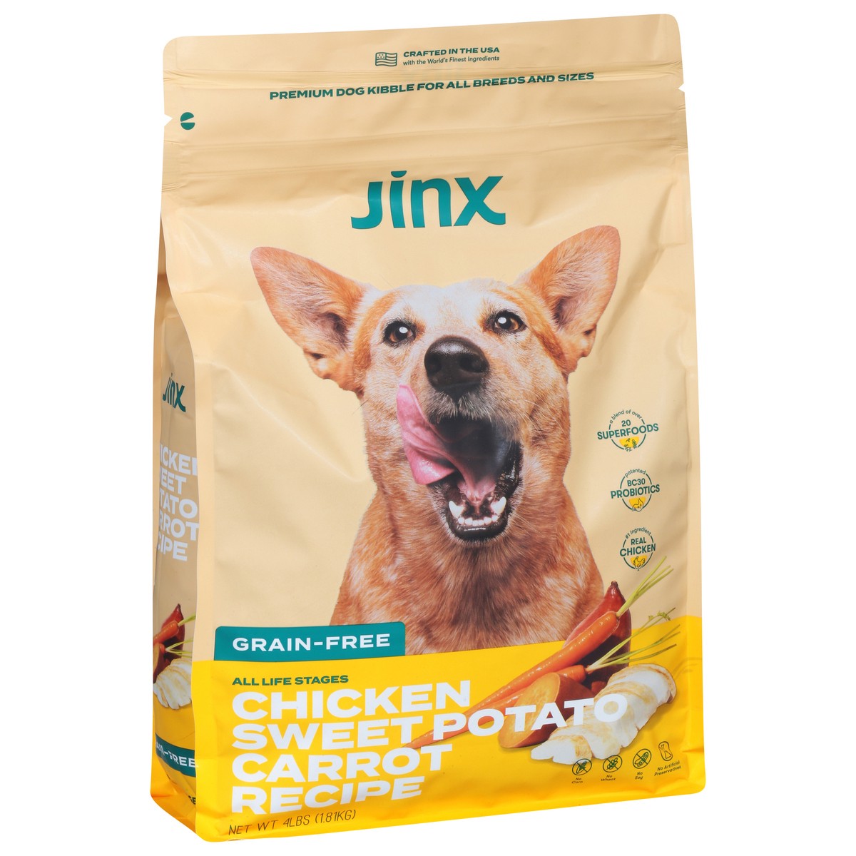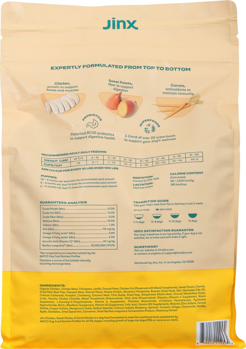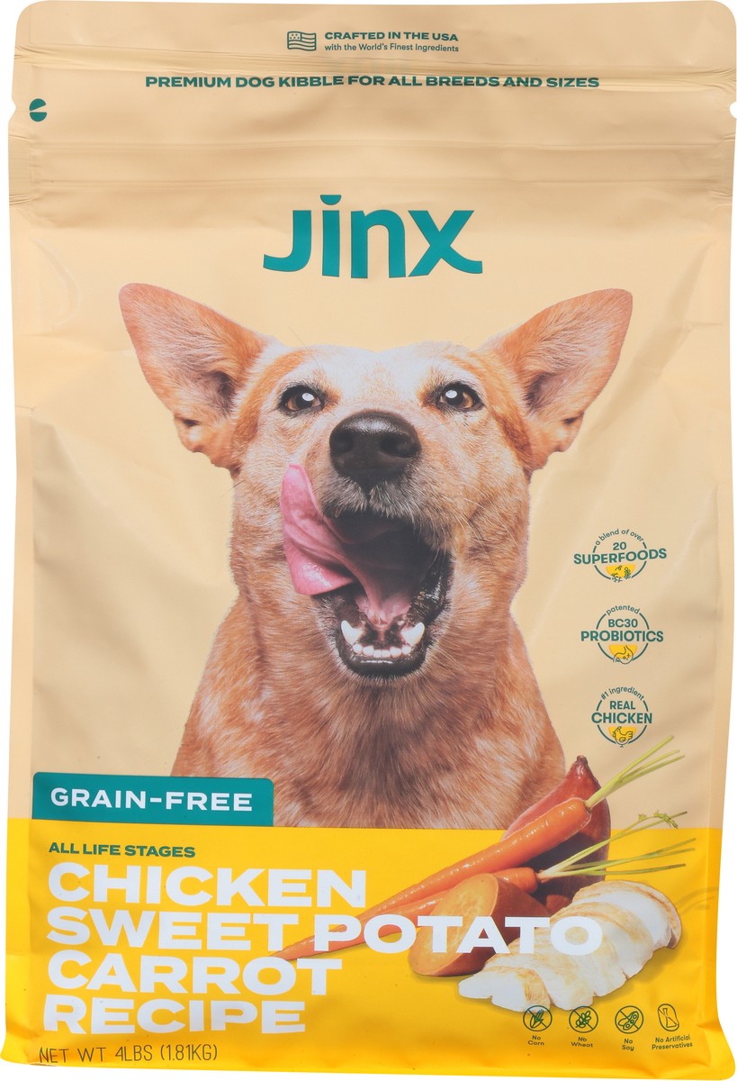 Jinx provides clean-label nutrition for dogs of all life stages. Our grain-free Chicken, Sweet Potato, and Carrot kibble recipe is expertly formulated and nutritionist-approved. Our dry dog food conta…