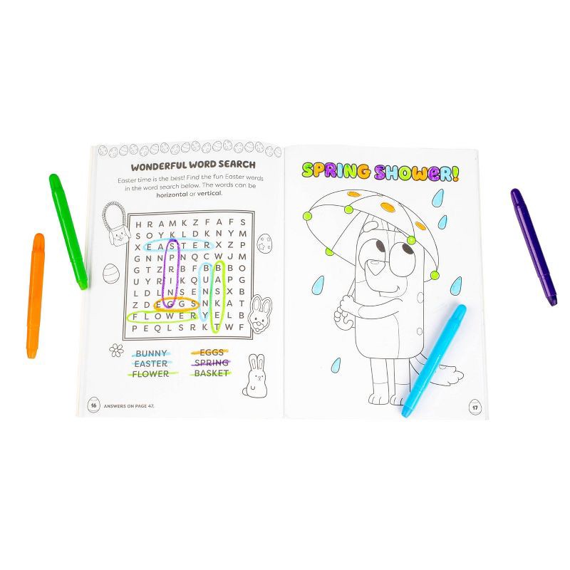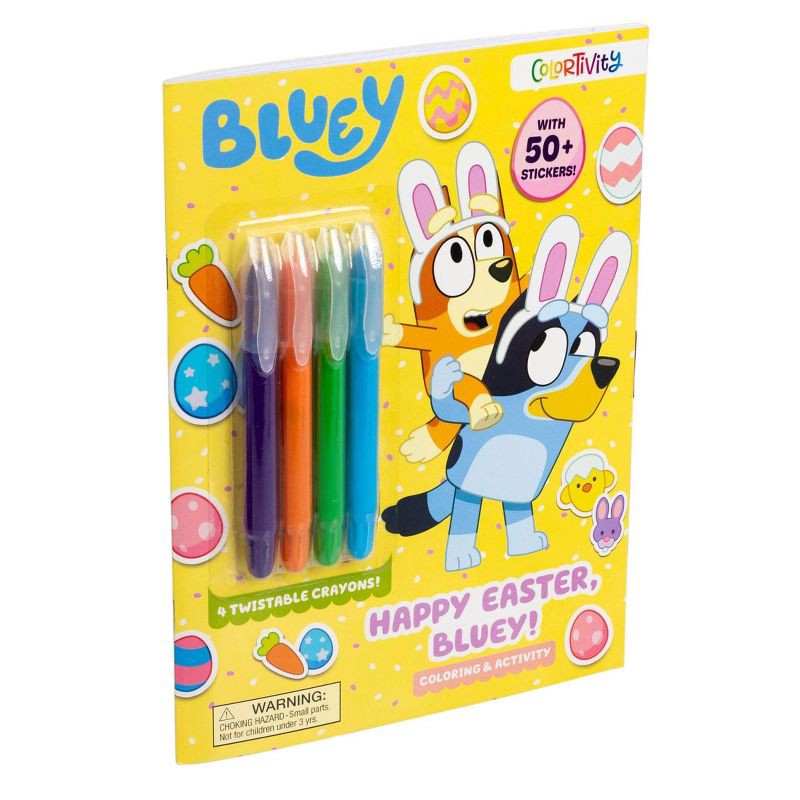 - Celebrate Easter with Bluey, Bingo, and the rest of their family with this coloring and activity pad that comes with four twistable crayons!