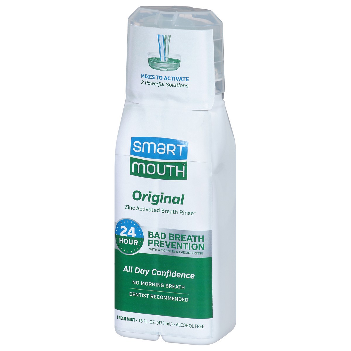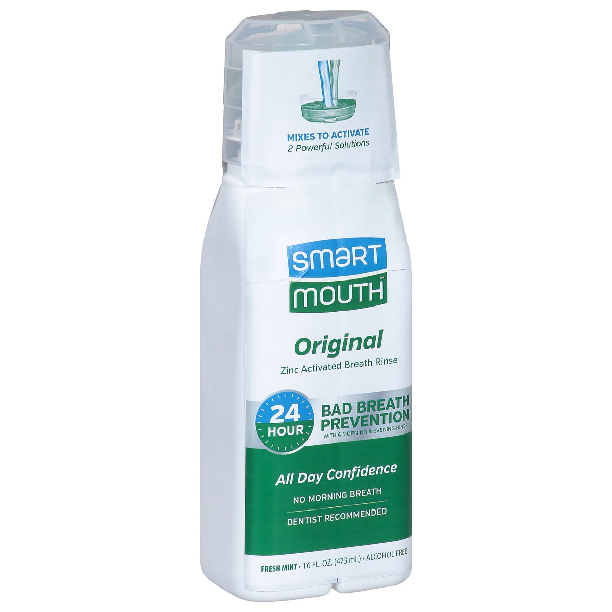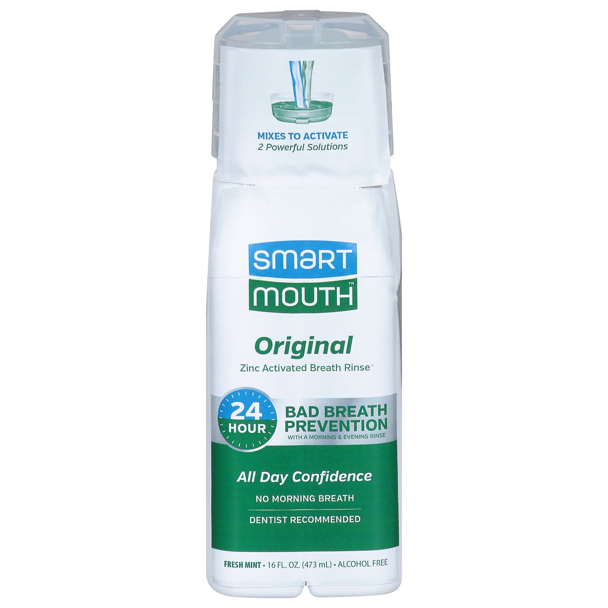 Mixes to activate. 2 powerful solutions. 24 Hour bad breath prevention with a morning & evening rinse. All day confidence. No morning breath. Alcohol free. Why 2 Separate Solutions? The power of Smart…