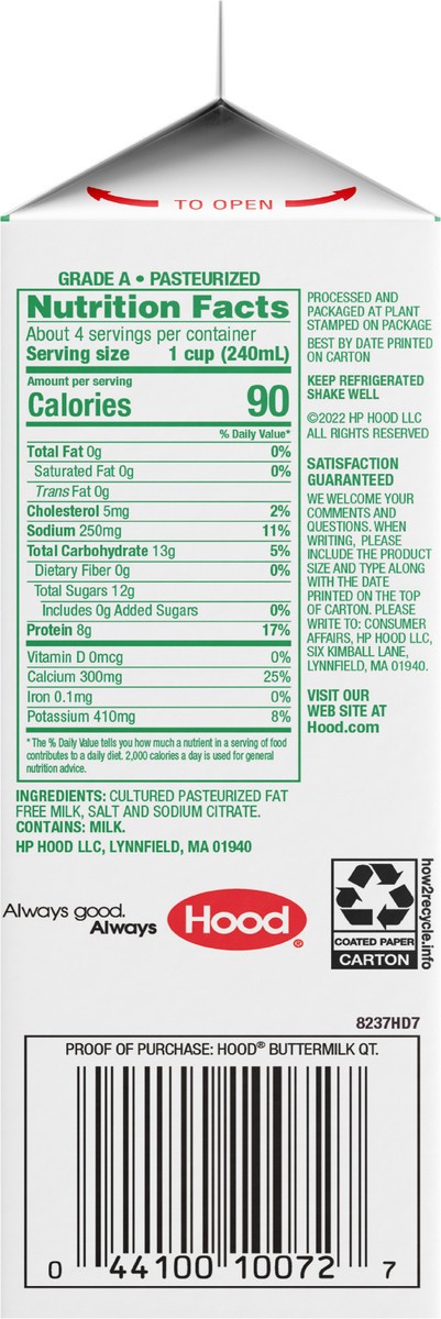 Hood Fat Free Cultured Buttermilk - 32 Oz