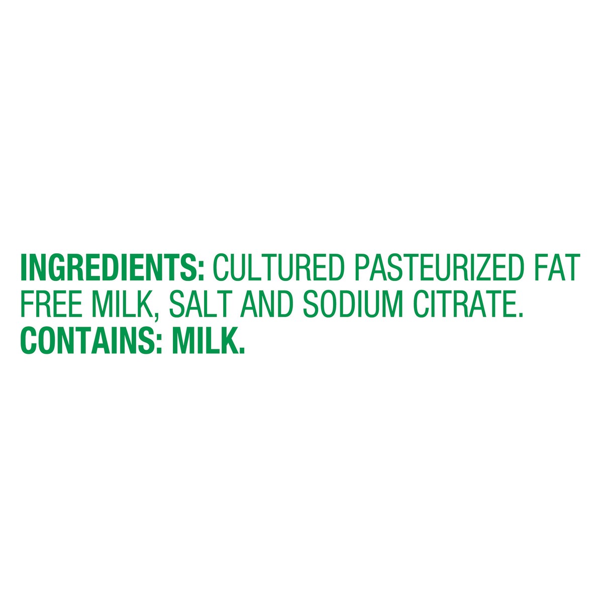 Cultured Pasteurized Fat Free Milk, Salt and Sodium Citrate.