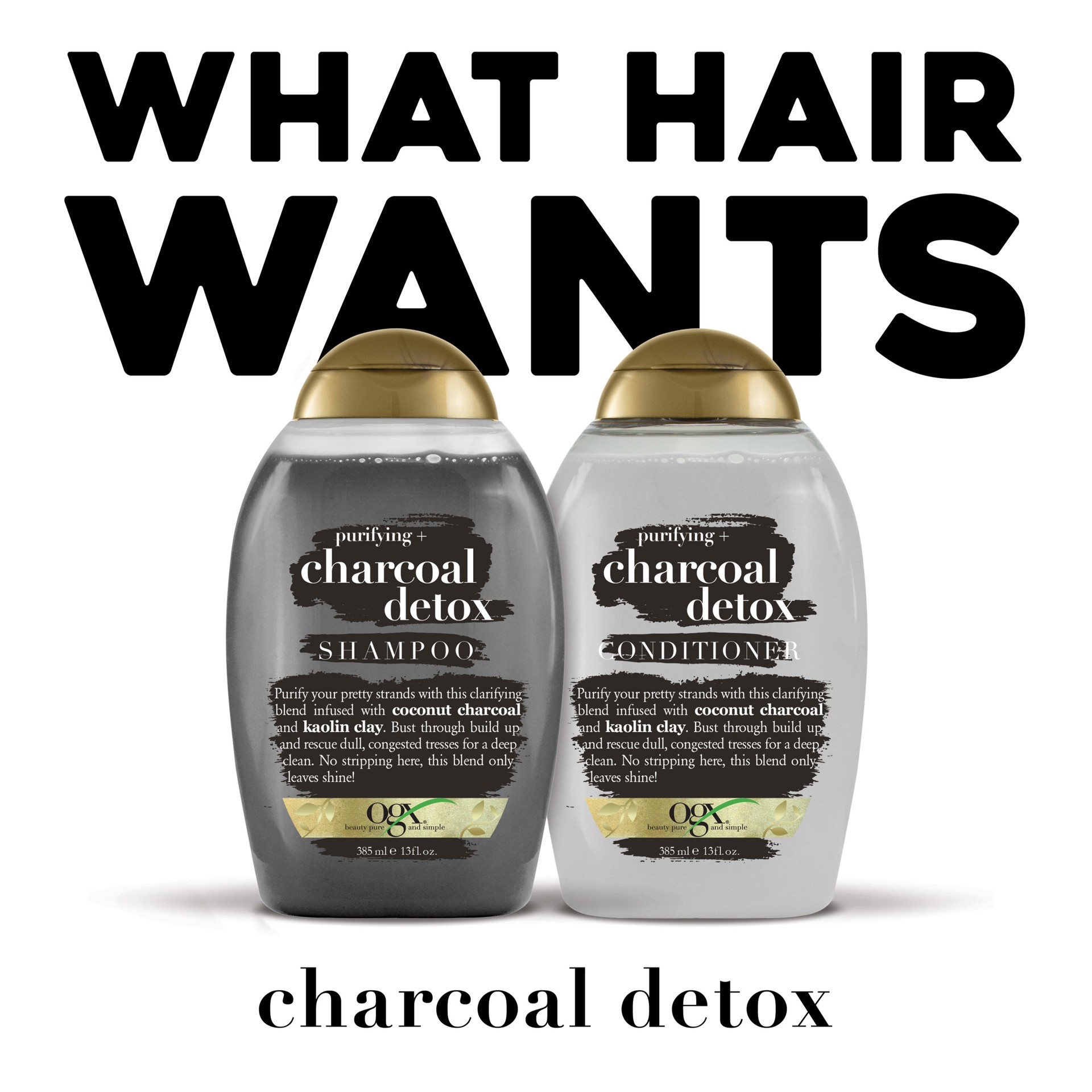 Hair hooked to hairspray and dragged down by dry shampoo? Give your hair a deep clean detox with OGX Purifying + Charcoal Detox Shampoo. This clarifying blend infused with activated coconut charcoal a…
