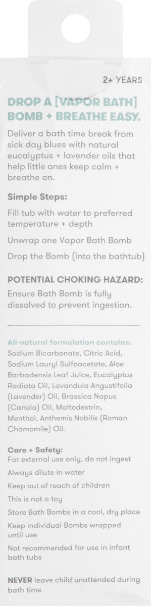 Vapor bath bombs deliver a bath time break from sick day blues with natural eucalyptus and lavender oils that help littles ones keep calm and breathe on. Care Instructions For external use only, do no…