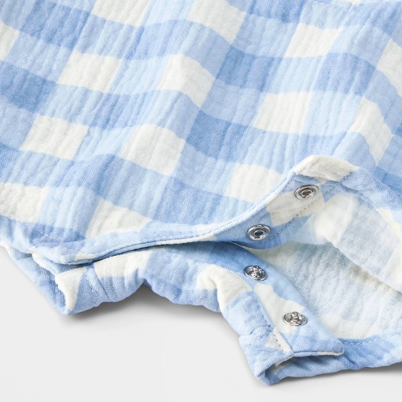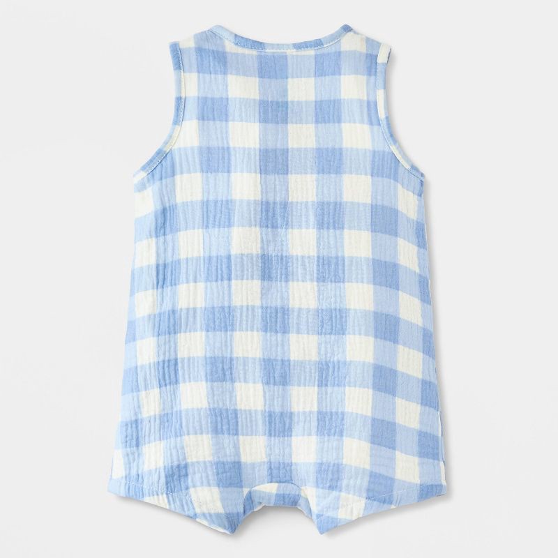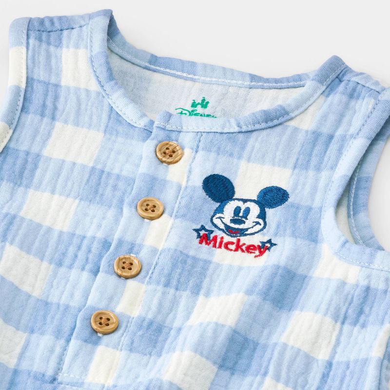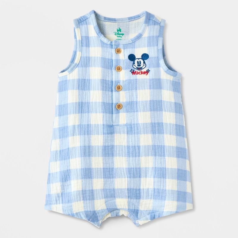 Mickey Mouse & Friends Baby Boys' Disney Mickey Mouse Americana Gingham Romper - Light Blue 12M