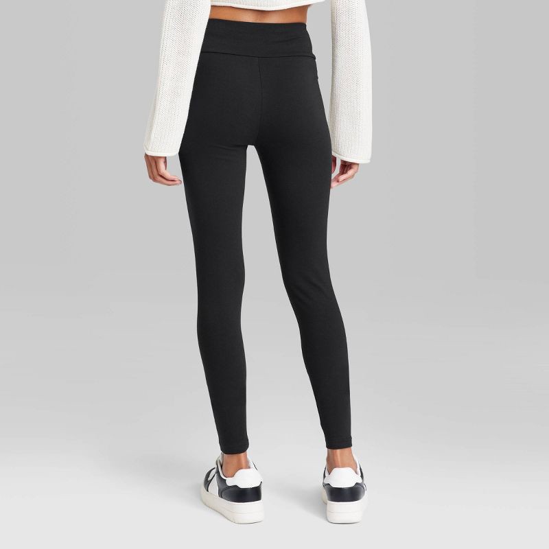 Women's black high-waisted leggings with cotton-blend construction for complete comfort. Wide waistband lends definitive detail along with the full-length design. Full waistband elastic lends addition…