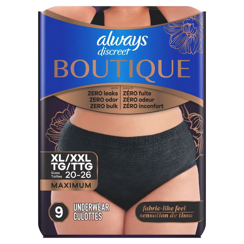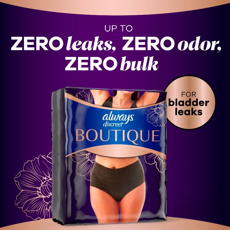 Try Always Discreet Boutique incontinence underwear for women. These reimagined adult diapers for women have up to zero leaks, zero odor, and zero bulk incontinence protection you can depend on. Desig…