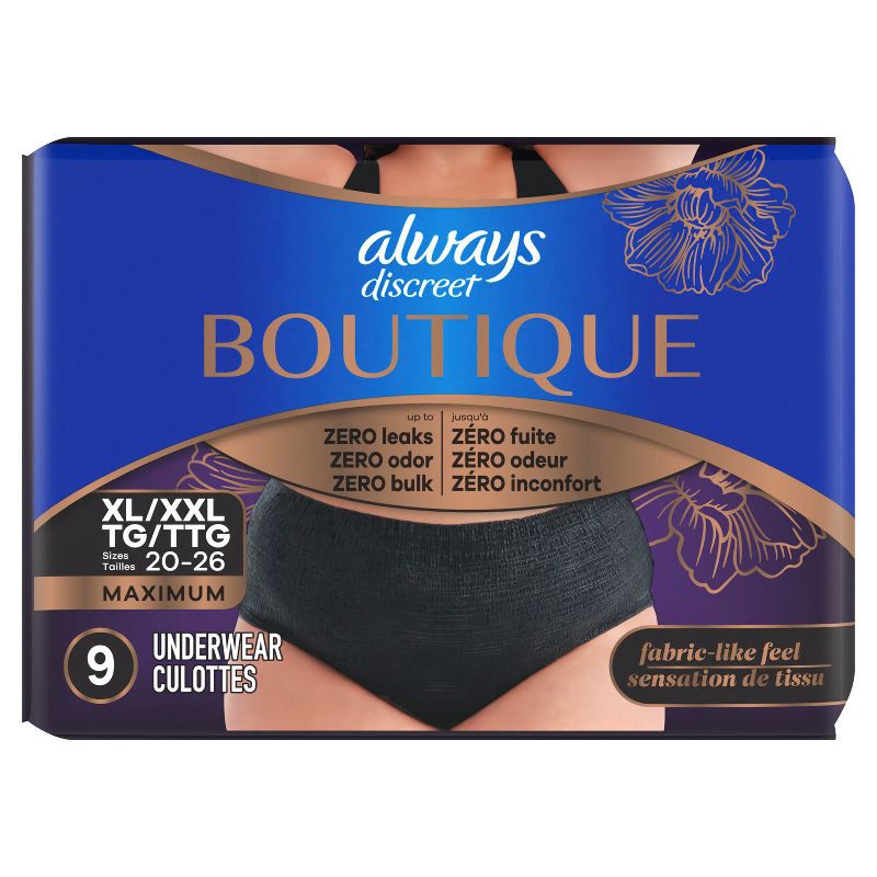 Always Discreet Boutique Black Maximum Underwear - XL - 9ct