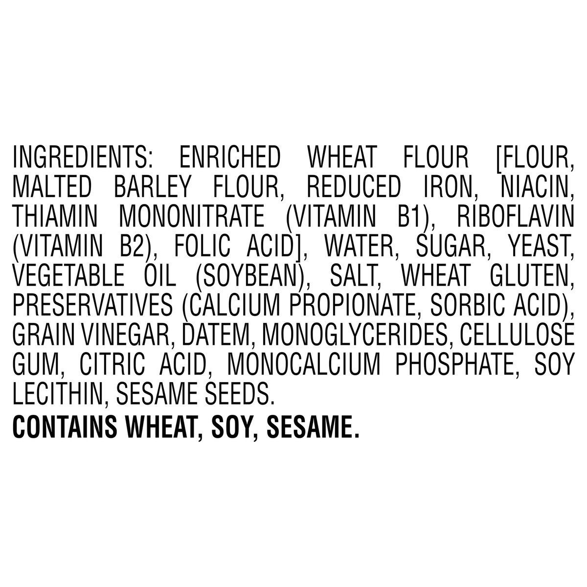 Enriched Wheat Flour [Flour, Malted Barley Flour, Reduced Iron, Niacin, Thiamin Mononitrate (Vitamin B1), Riboflavin (Vitamin B2), Folic Acid], Water, Sugar, Yeast, Vegetable Oil (Soybean), Salt, Whea…