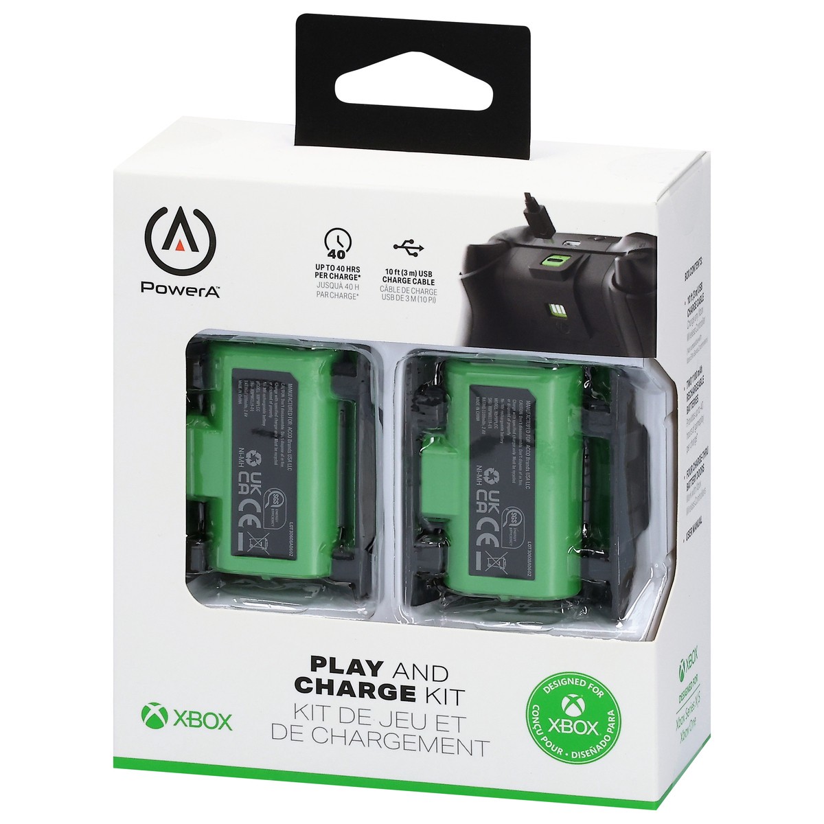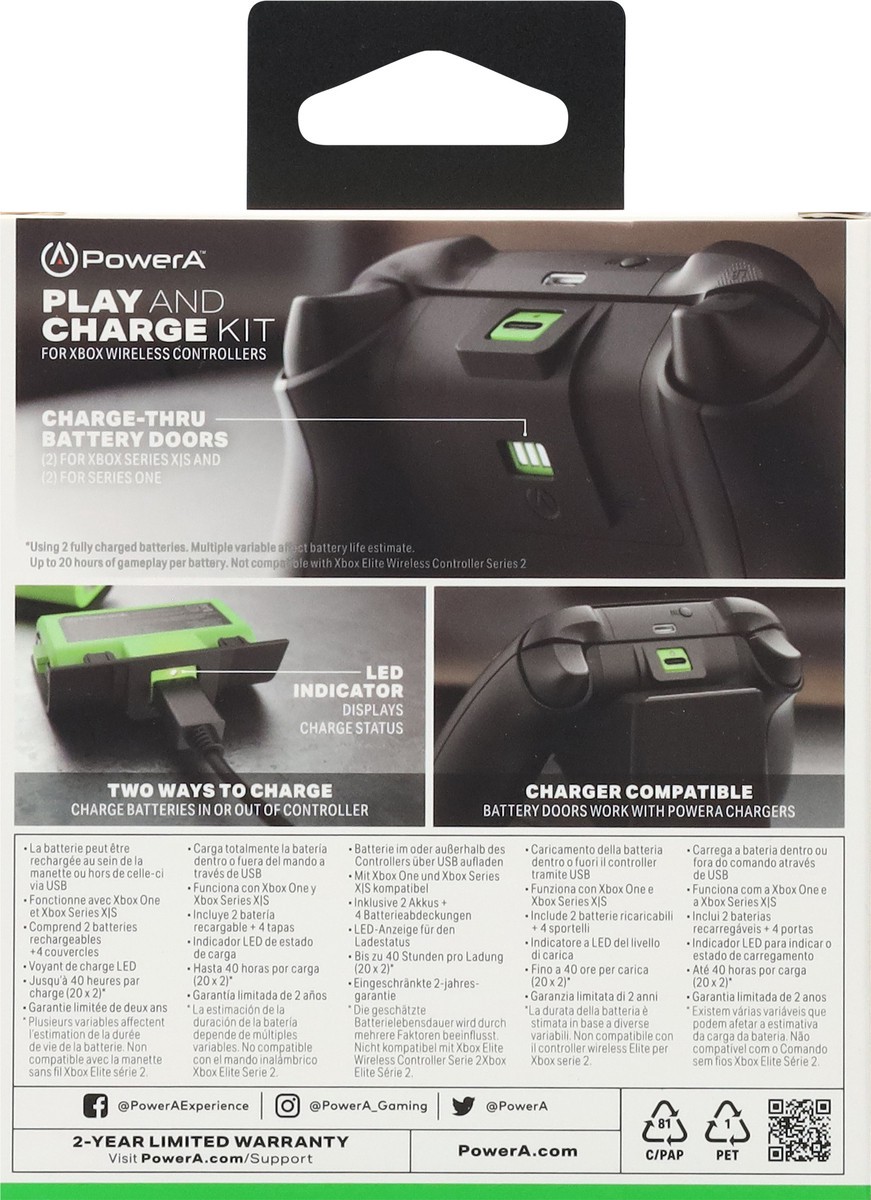 The Play and Charge Kit for Xbox includes two 1100 mAh rechargeable batteries for up to 40 hours of gameplay with an Xbox Wireless Controller.* With the flexibility to charge while in controller or ou…